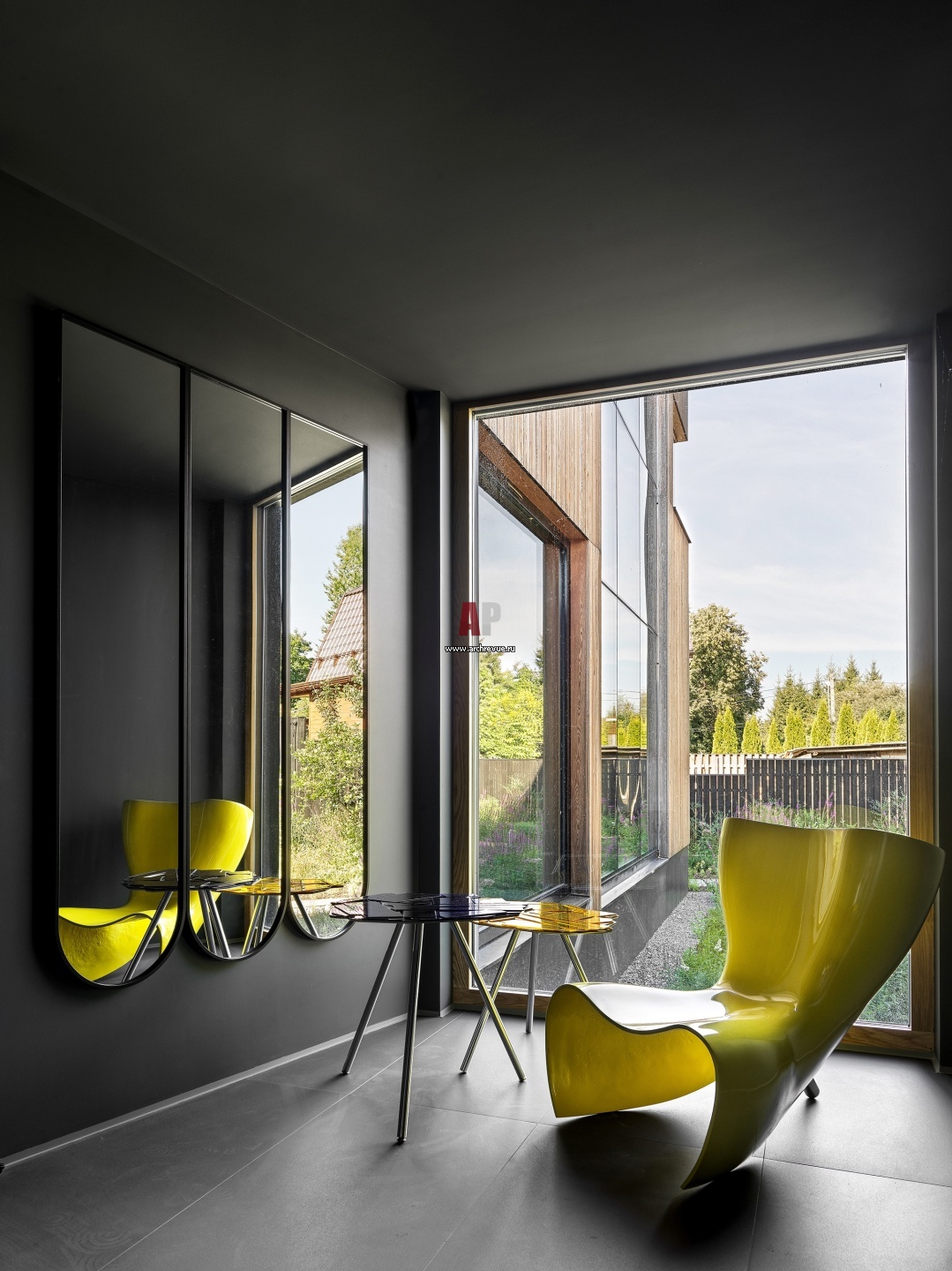 Бетонный дом в Подмосковье. В интерьере мало предметов, но все выбраны необычайно тщательно и транслируют эстетику модернизма.