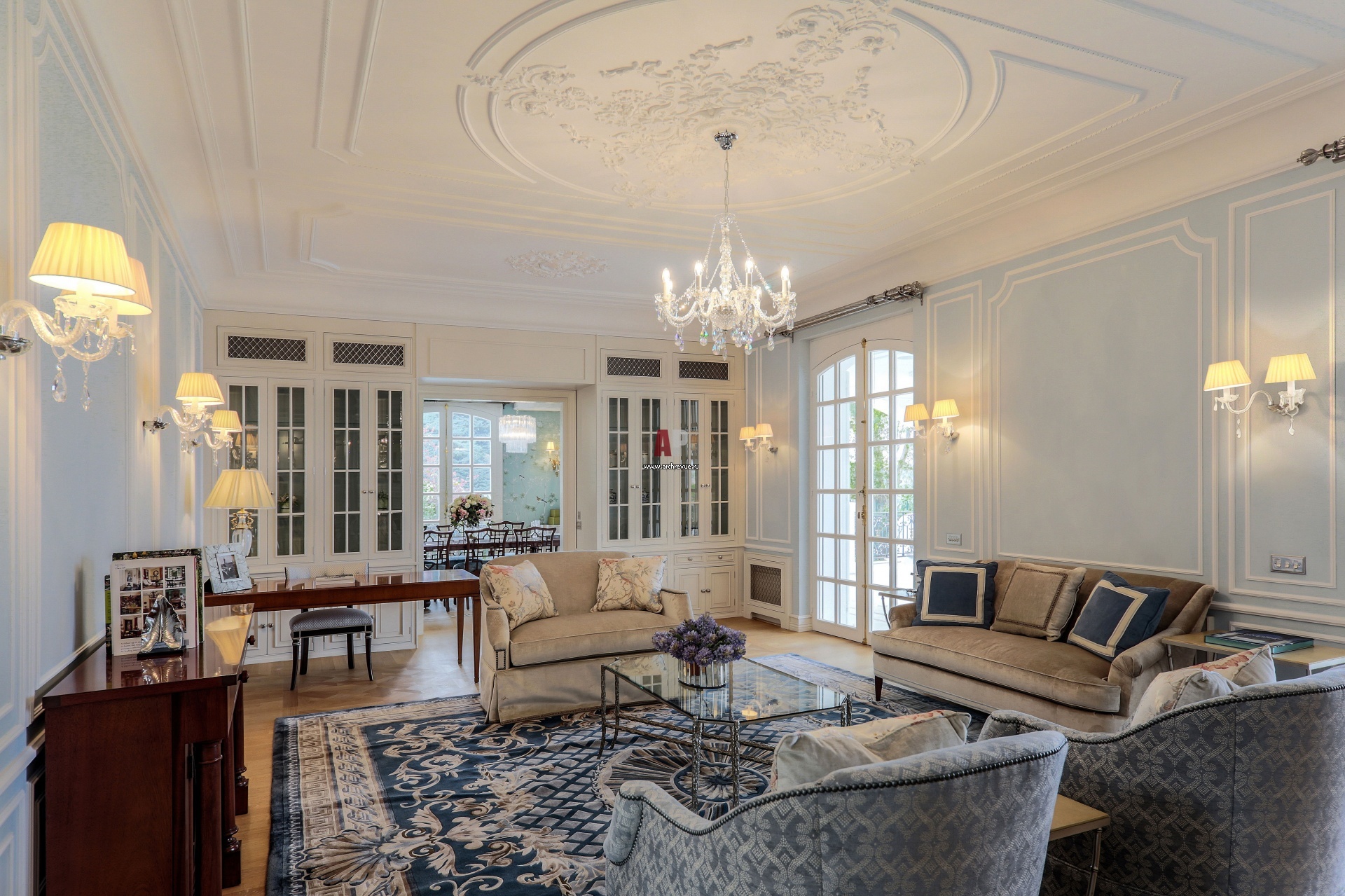 Интерьер гостиной в стиле бель-эпок. Диваны и кресла, Hickory Chair. Кресла и столик, Lillian August. Бра, Chelsom. Поставка мебели и аксессуаров, Charles.Cameron.