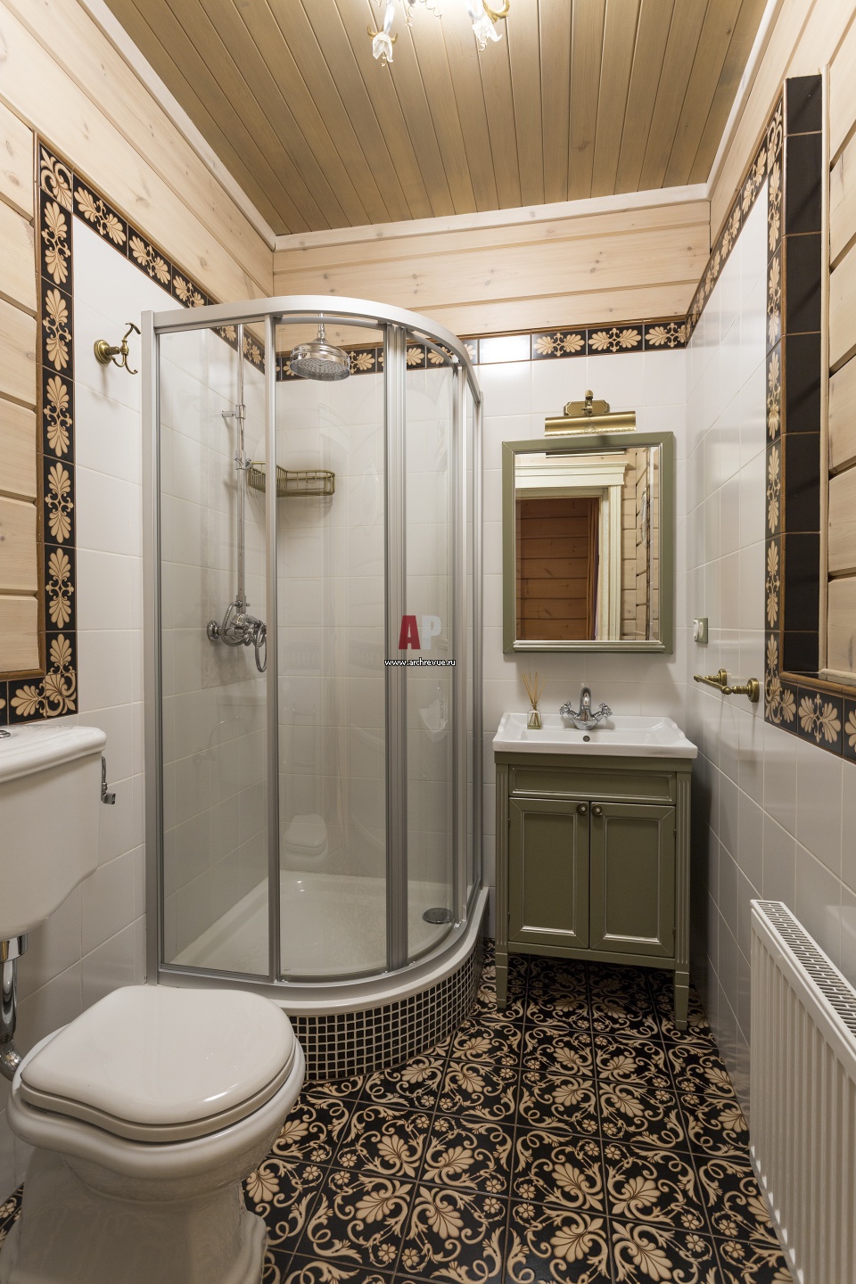 Фото интерьера санузла деревянного дома в стиле неоклассика