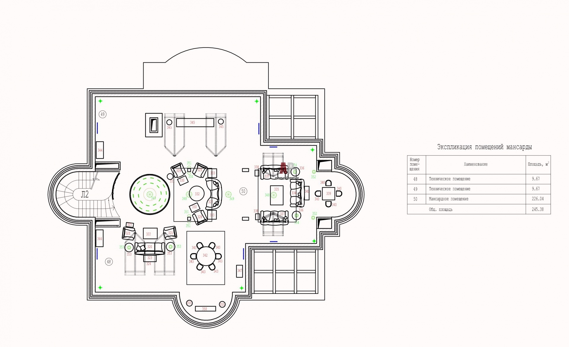 План мансардного этажа 4-х этажного дома со СПА-комплексом. Общая площадь – 1203 кв. м.
