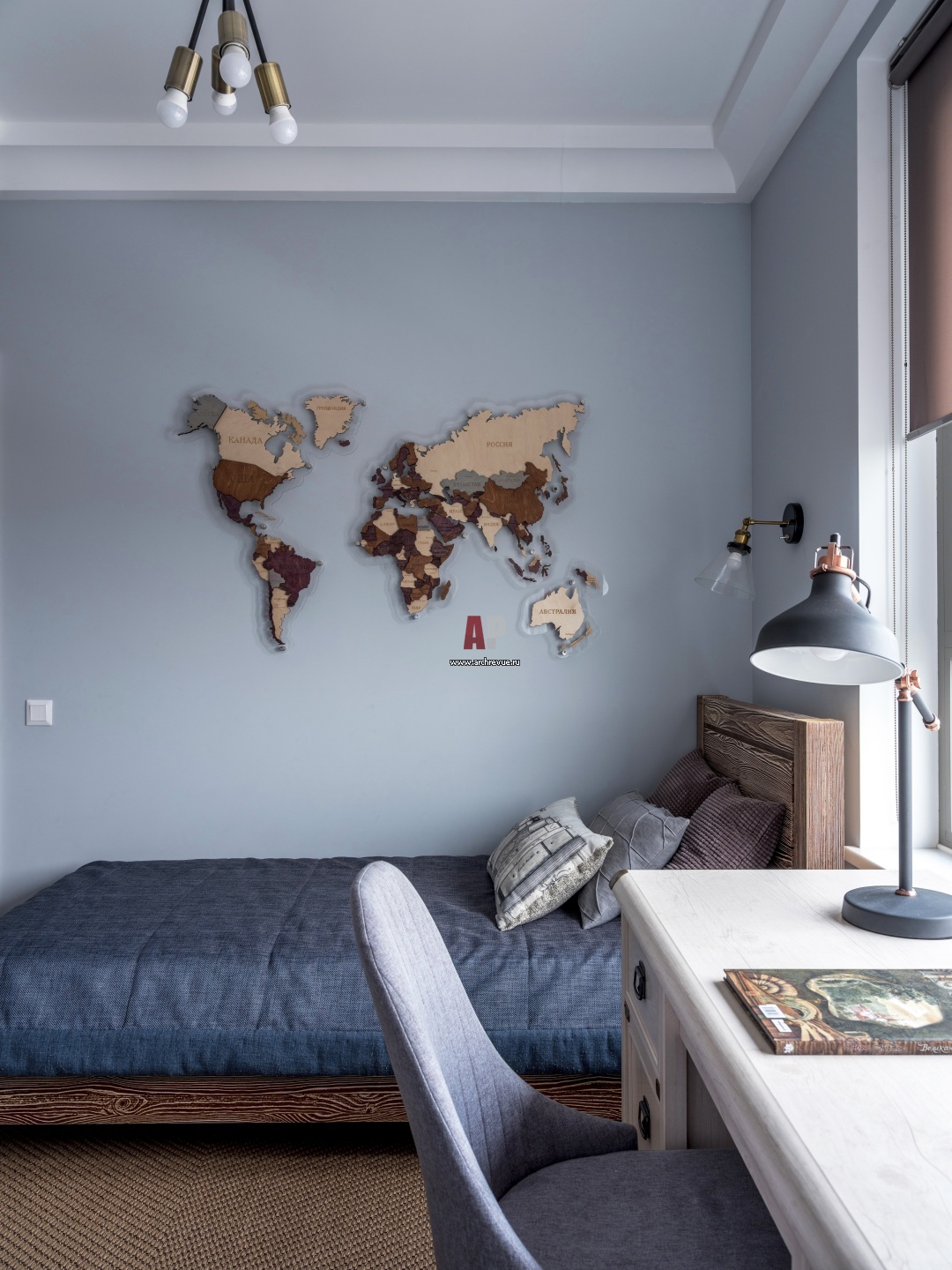 Семейная квартира в сине-голубой гамме с тремя спальнями. Интерьер одной из детских.