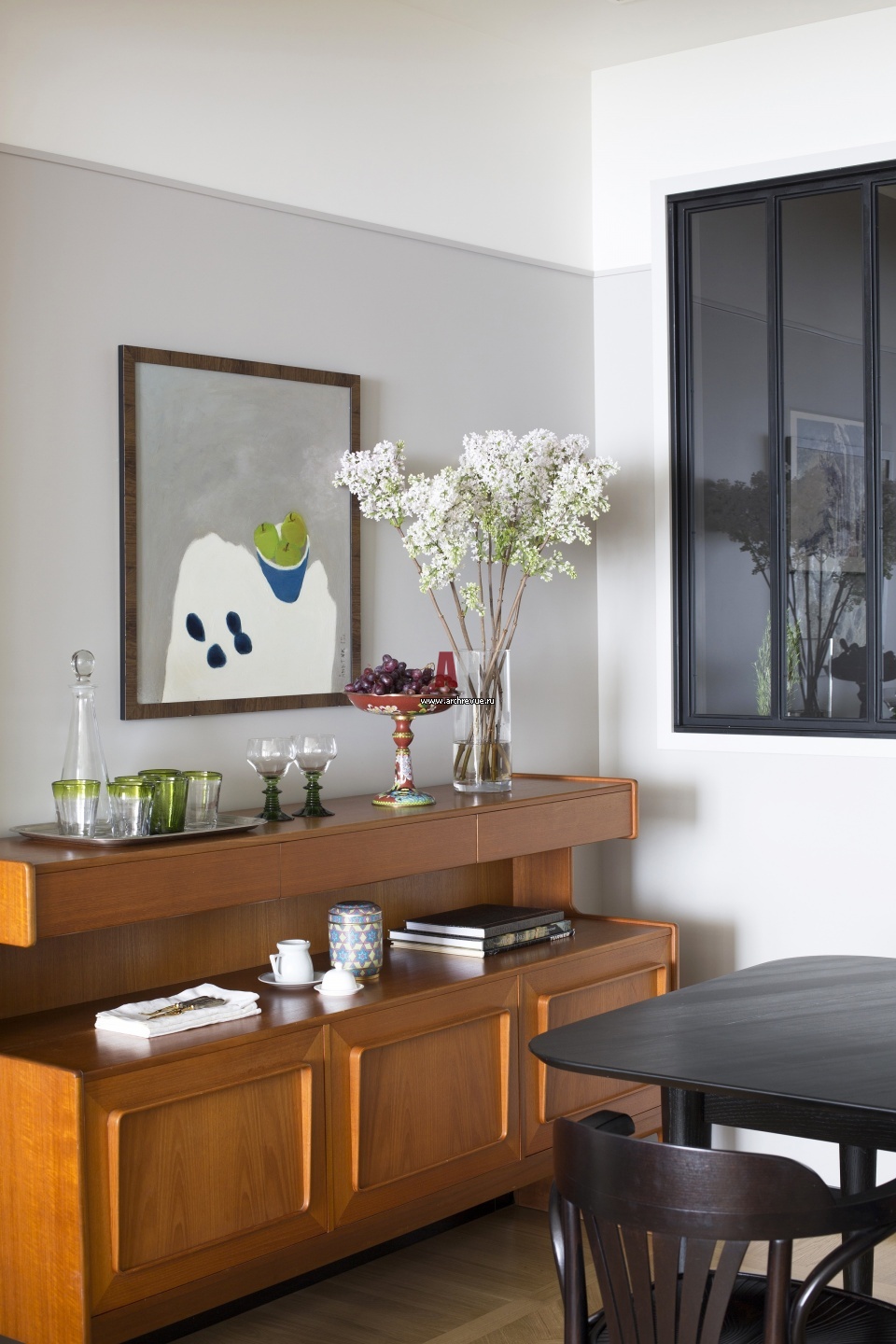 Интерьер столовой. Английский буфет из тика, винтаж. Над ним картина Аветика Абаджяна.