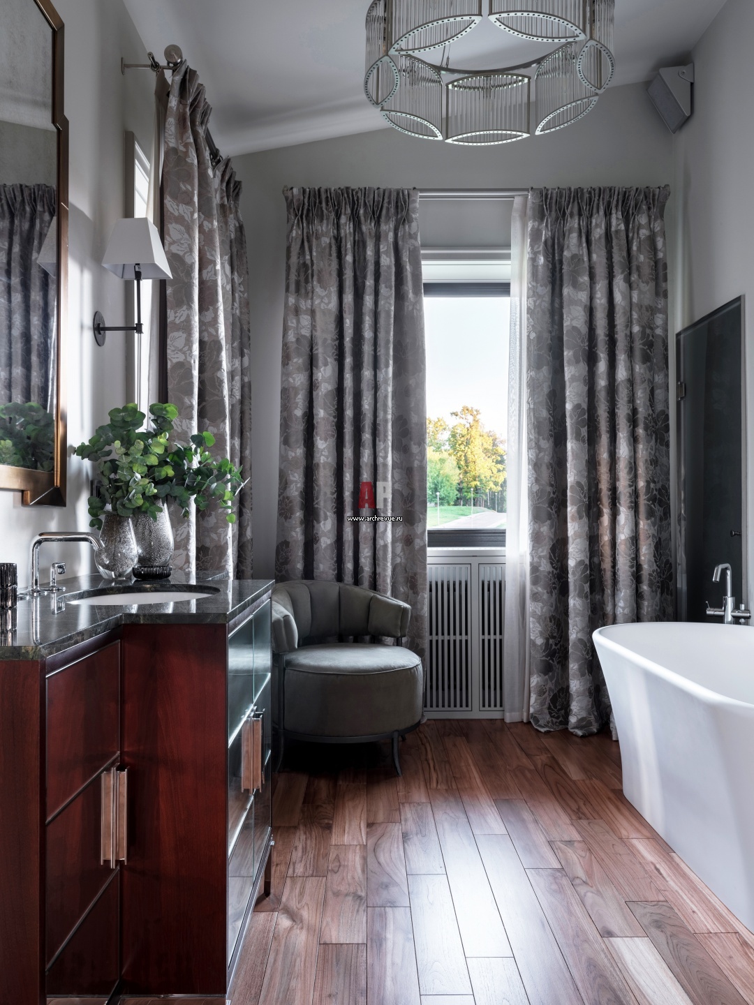 К хозяйской спальне примыкает ванная и гардеробная. Весь хозяйский блок предельно компактный, основную площадь второго этажа занимают детские помещения.