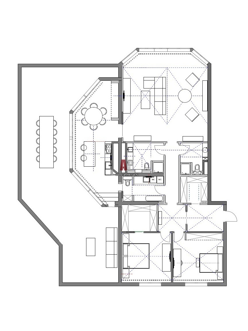 Перепланировка большой семейной квартиры в ЖК «Воронцовские пруды». Общая площадь – 287 кв. м.