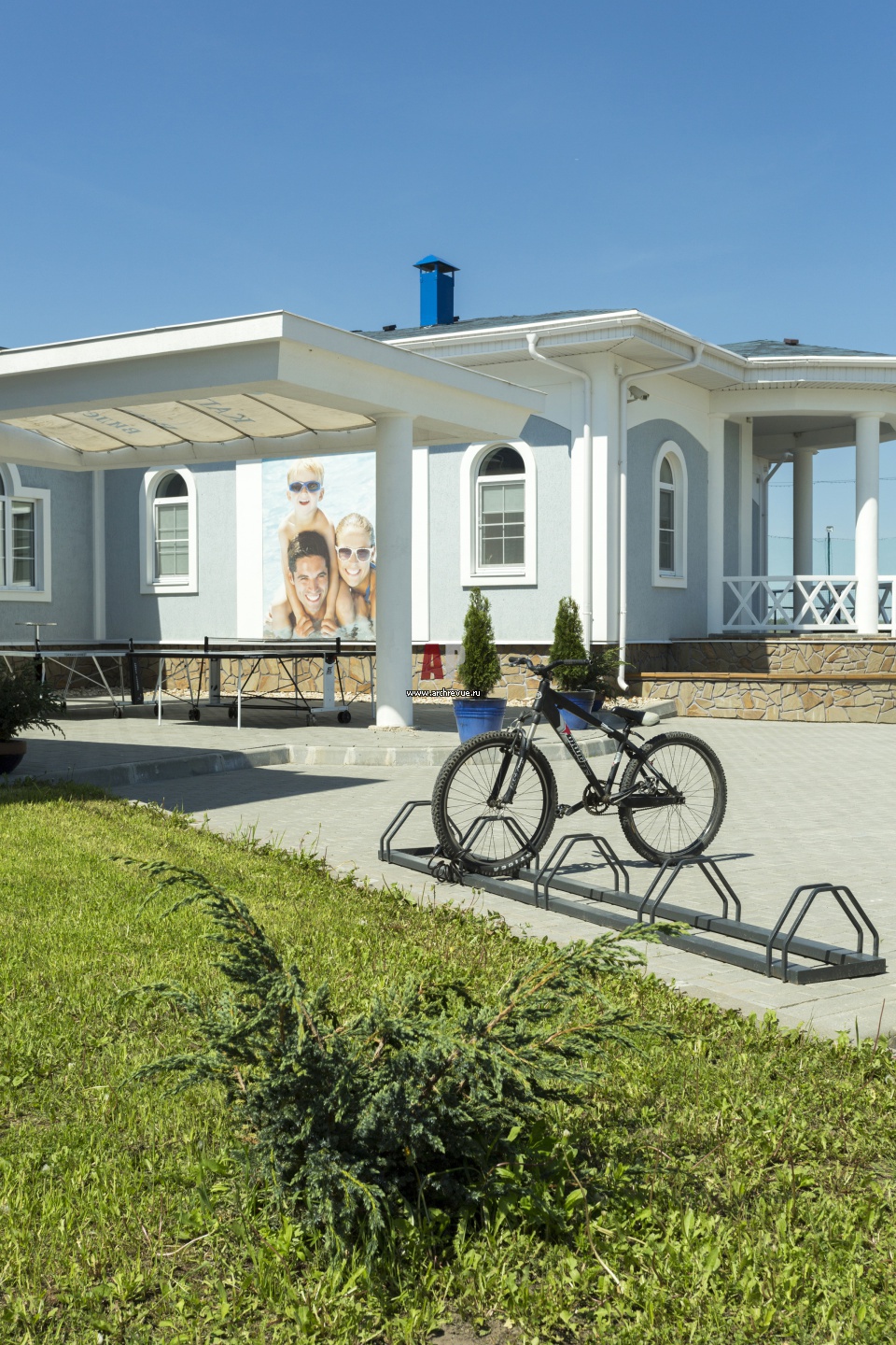 Фасад спортивно-оздоровительного комплекса оформлен в морском стиле.