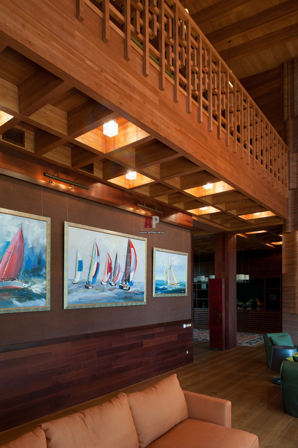 Интерьер гостиной. На стенах – морские пейзажи.
