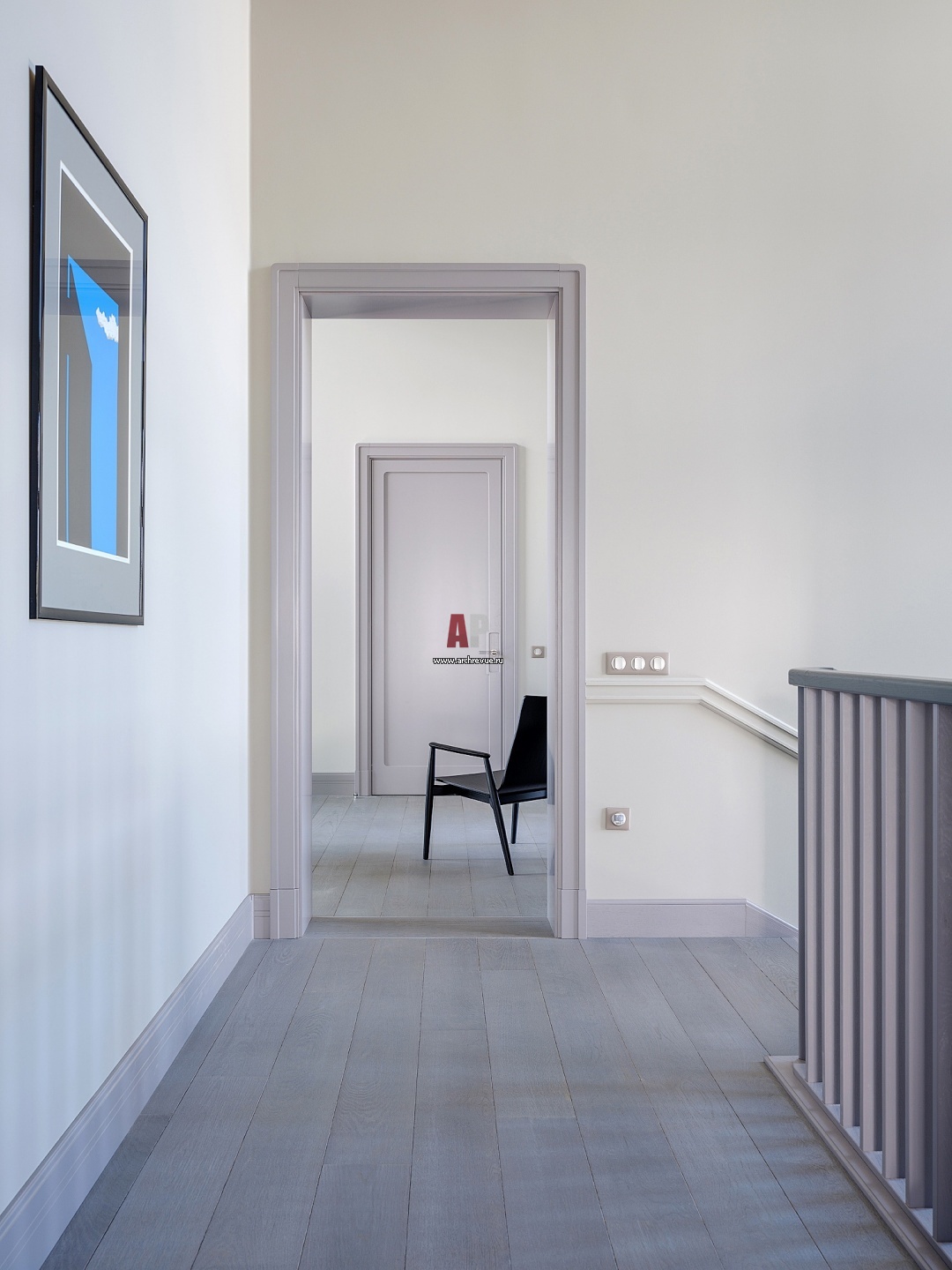 Интерьер трехэтажного дома с мягкими красками и теплыми фактурами