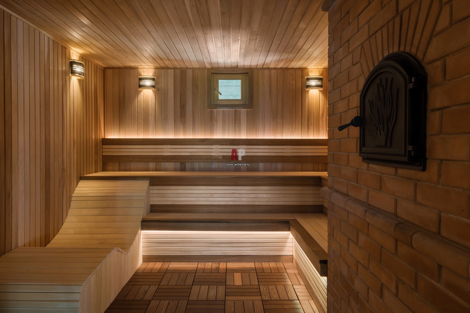 Деревянный гостевой дом со СПА-комплексом в Одинцово. Интерьер сауны.
