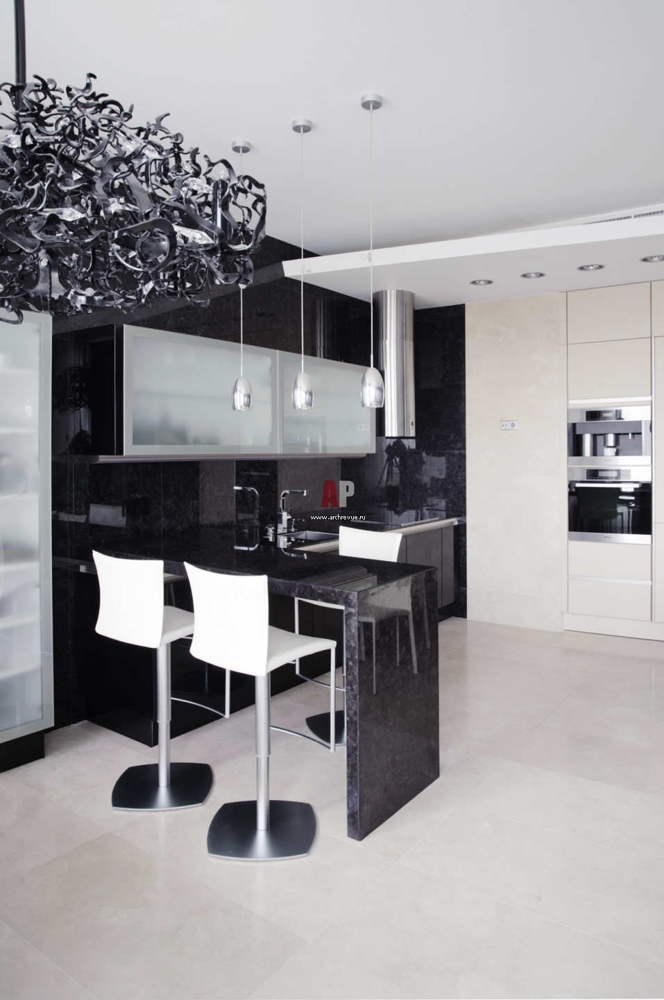 Кухня в минимализме решена на контрастах цвета и материалов — черного гранита и светлых деревянных фасадов мебели SieMatic. Авторы проекта Петр Зайцев, Арсений Борисенко, архитектурное бюро za bor.