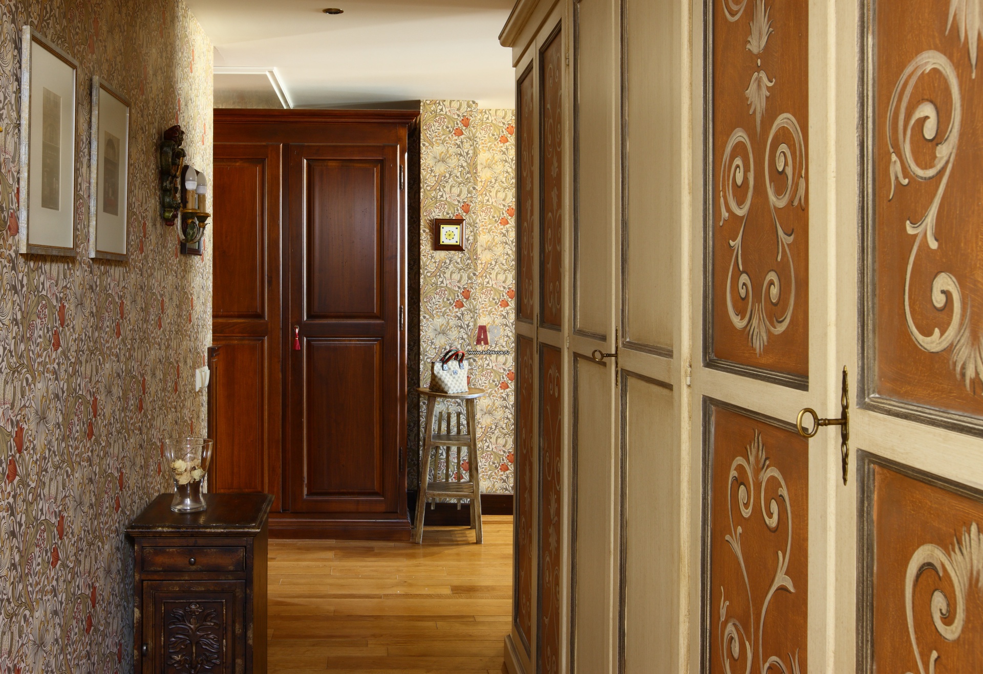 На фото – встроенный шкаф в коридоре. Фасады шкафа украшены ручной росписью в духе итальянской фрески.