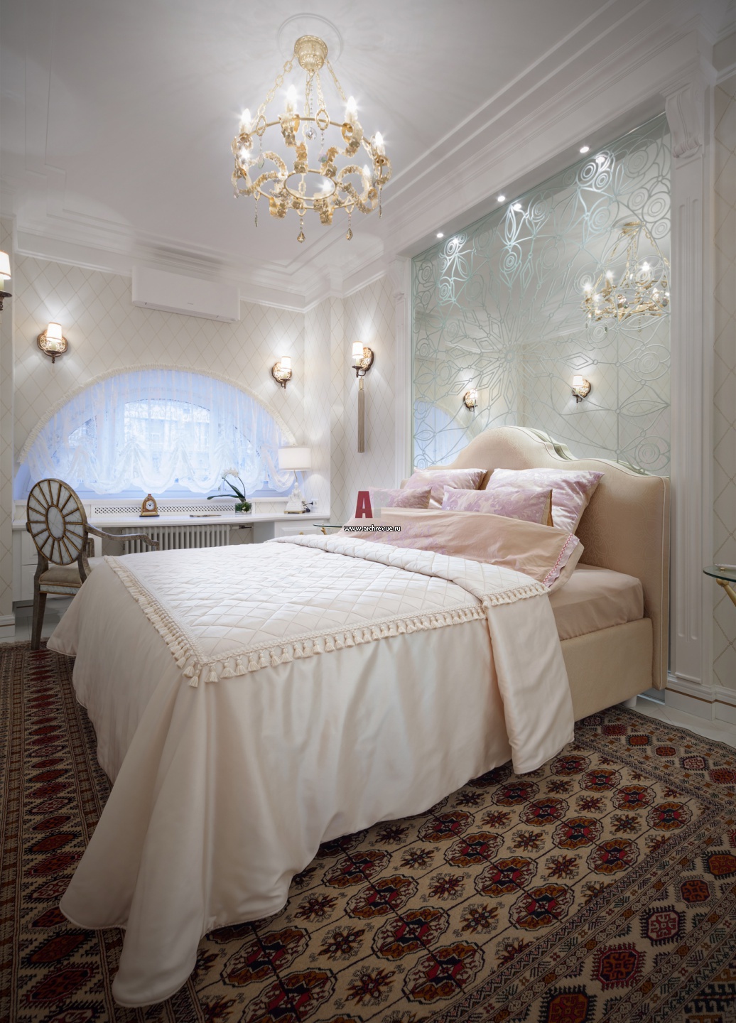 Фото интерьера спальни небольшой квартиры в стиле неоклассика