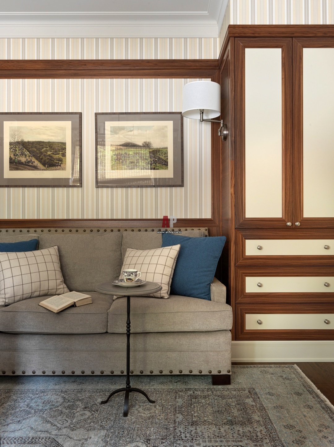 Кабинет дедушки. Обои в английском стиле, York Wallcoverings. Встроенная мебель сделана на заказ. Мебельная фурнитура, поставщик EMPORIO.ru.