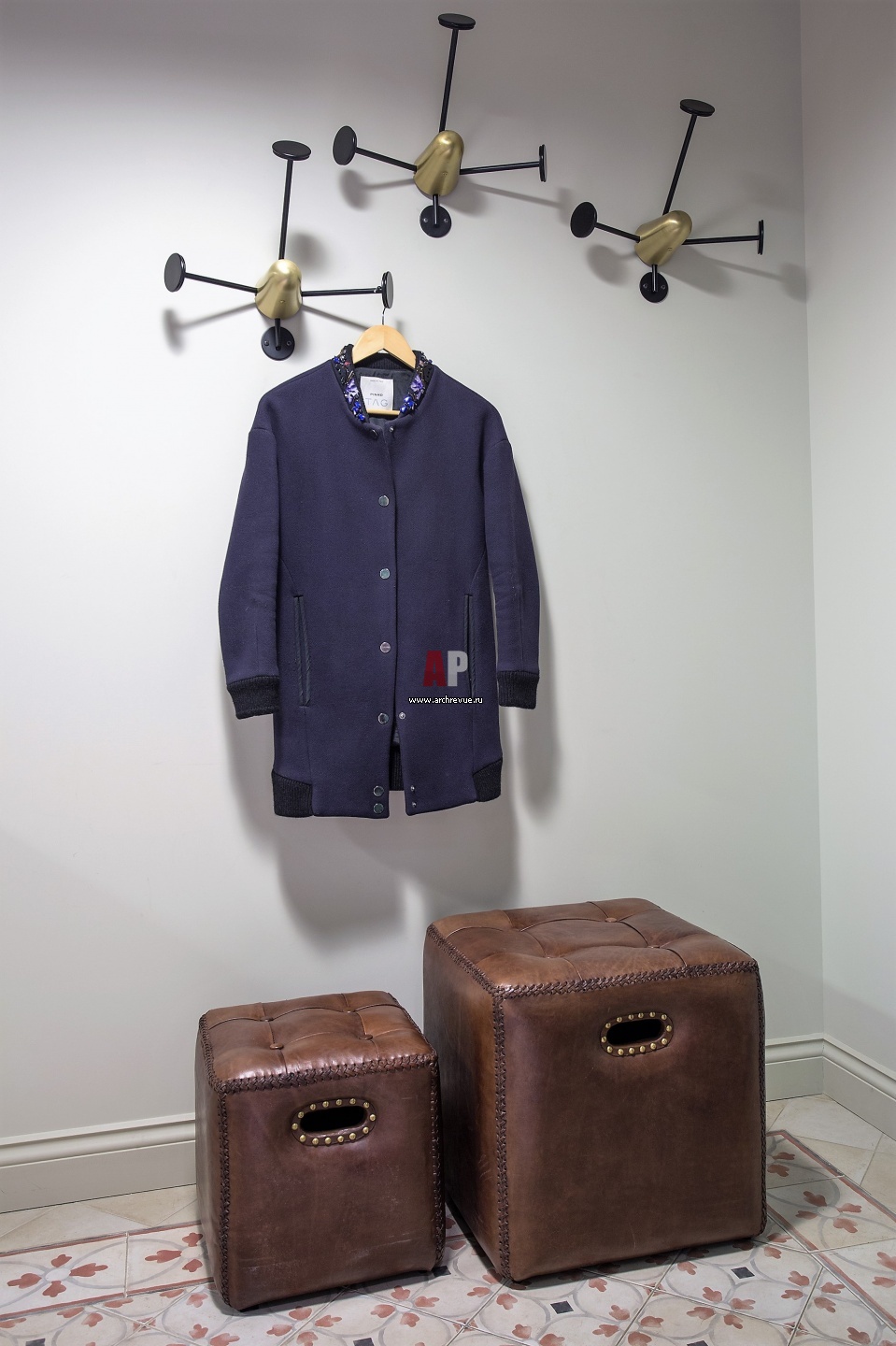 Интерьер прихожей. На полу – керамический «ковер» из плитки Arkadia. На стене – вешалки-самолеты.
