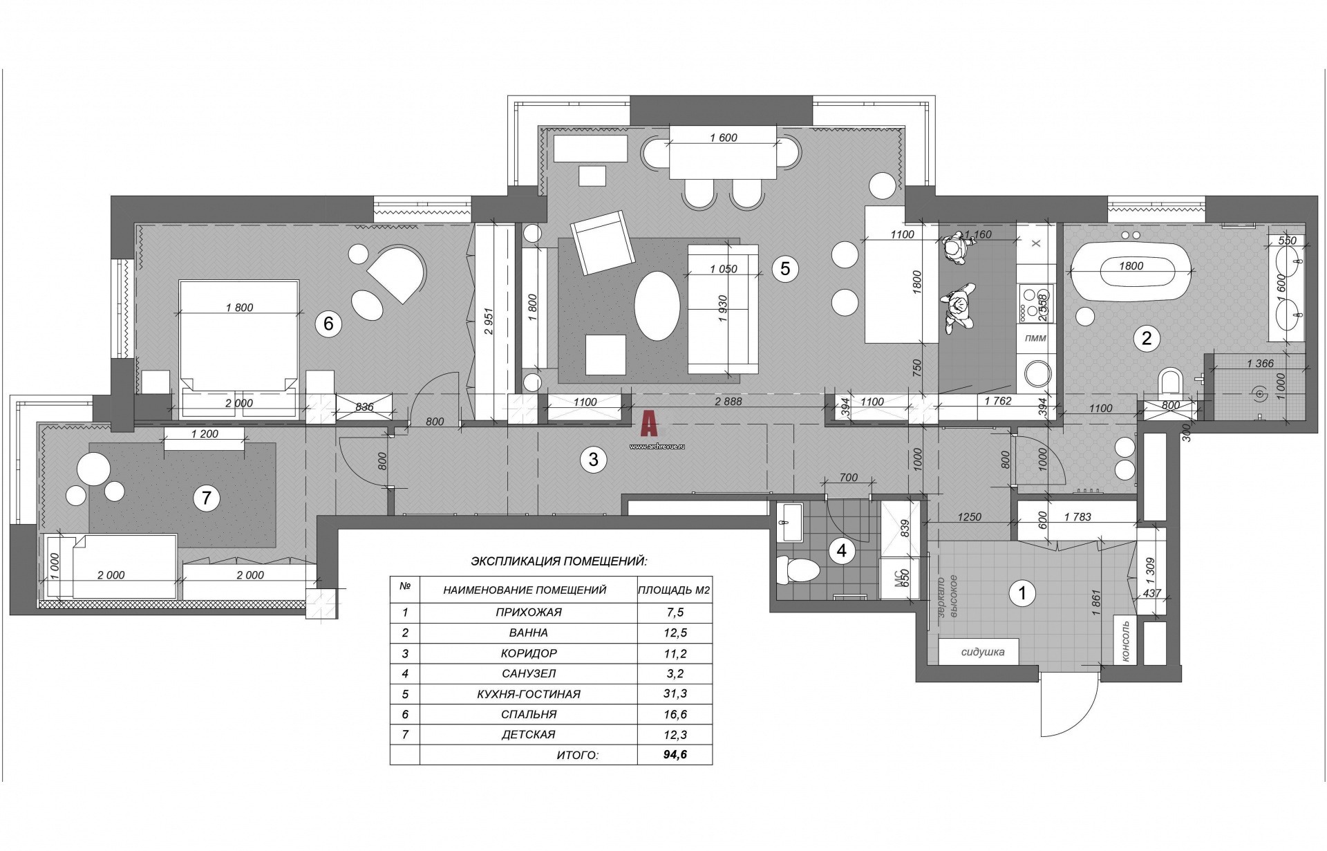 Перепланировка 3-х комнатной квартиры в старом жилом фонде. Общая площадь – 90 кв. м.