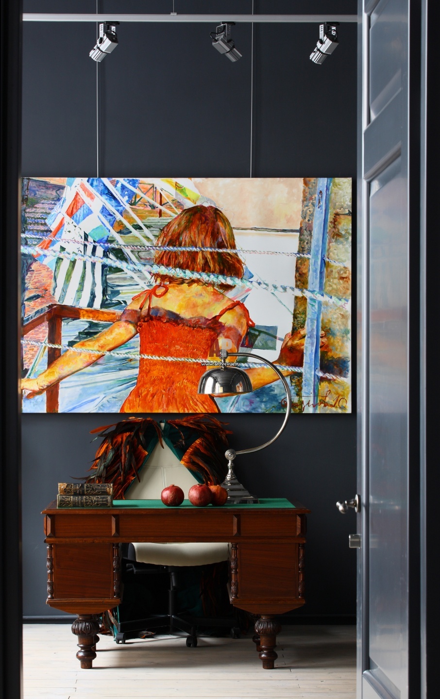 Рабочий стол директора – антикварный предмет российского производства начала IX века – фамильная ценность семьи Брагинских. Настольная лампа из стали, Andrew Martin.