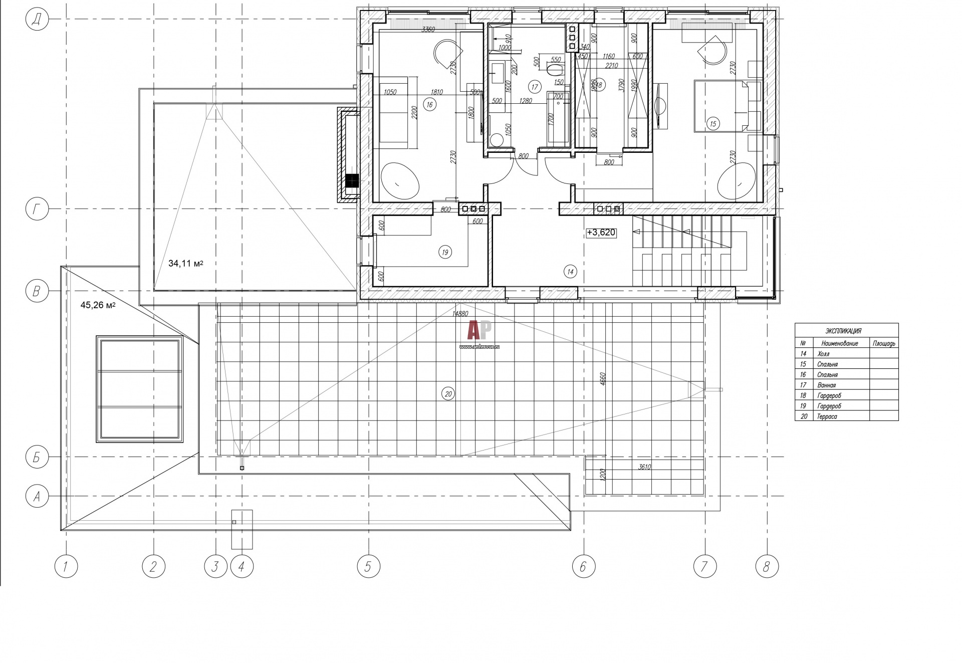 План второго этажа двухэтажного дома в Репино. Общая площадь – 430 кв. м.