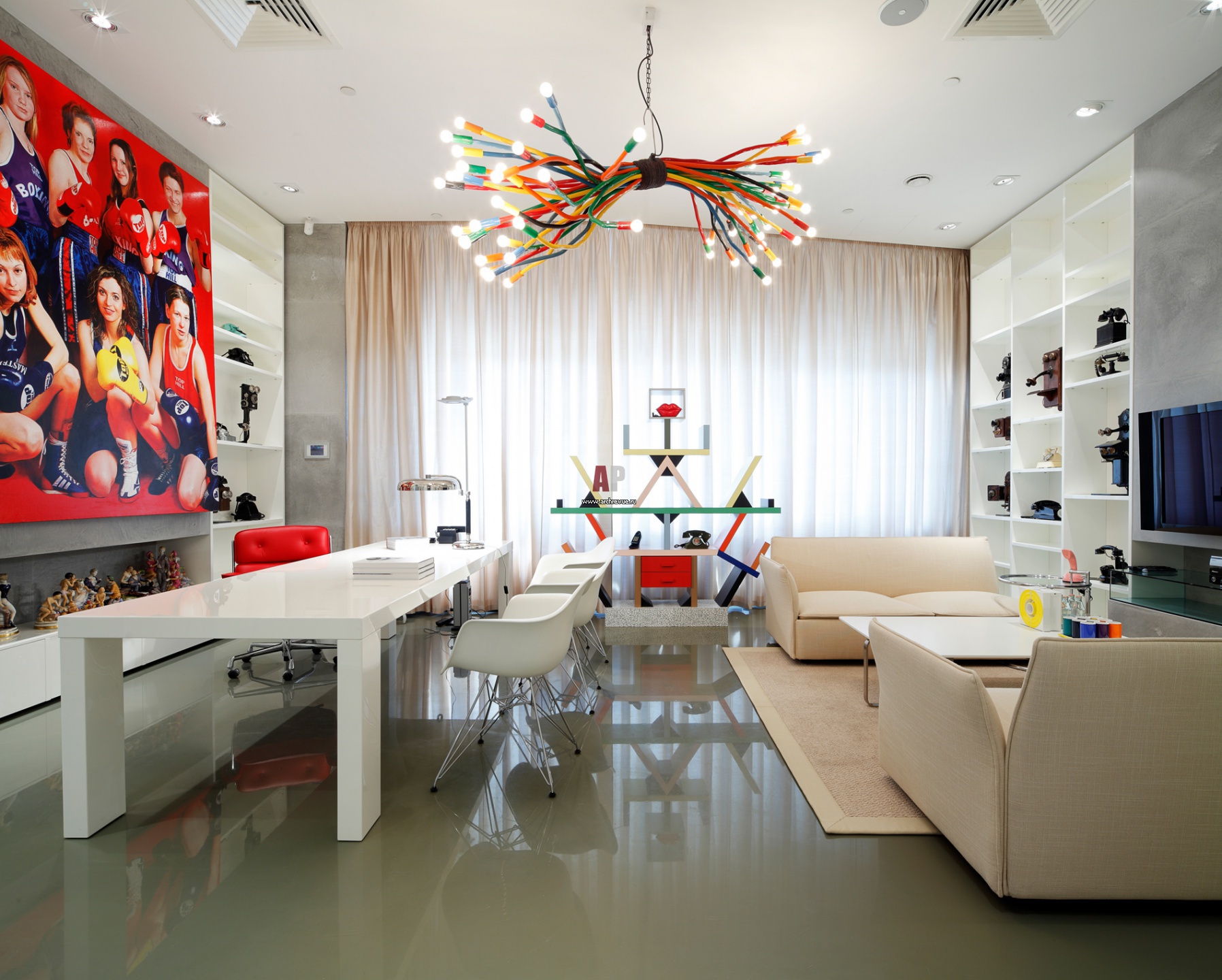 Кабинет президента компании освещает знаменитая резиновая люстра «54ARMS», созданная классиком дизайна ХХ века Гаэтано Пеше (Gaetano Pesce).