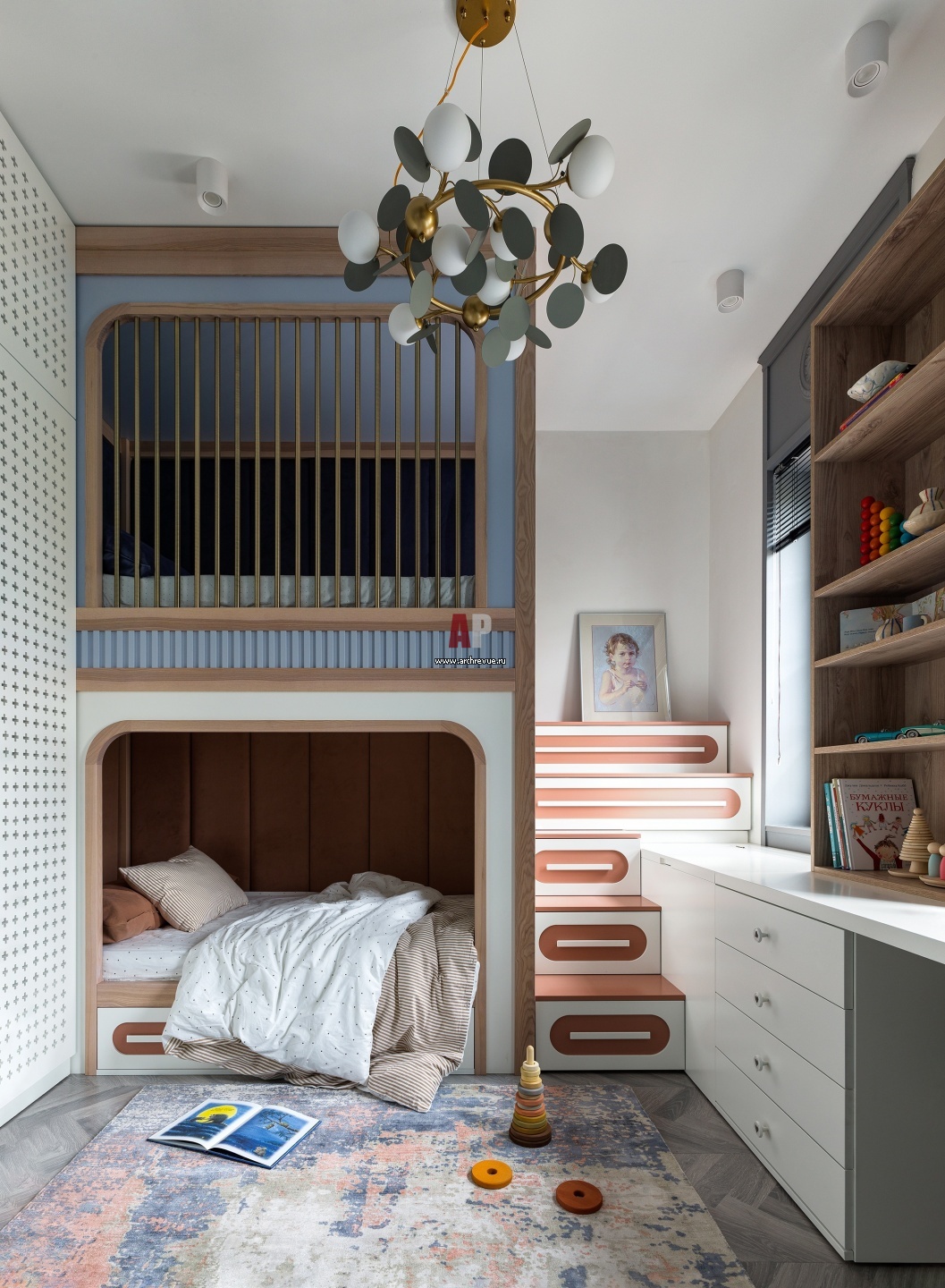 Пока строился дом, у заказчиков родился еще один ребенок, и пришлось оперативно переделывать детскую в комнату для двоих малышей.