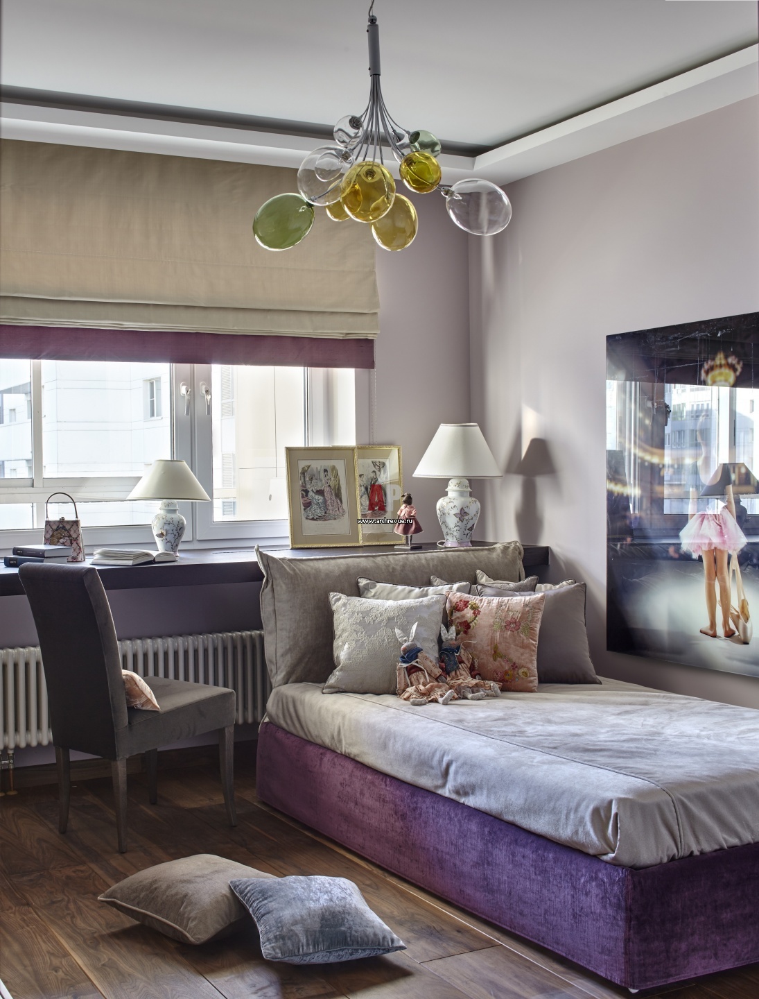 Детская выполнена в припыленных сиреневых тонах.