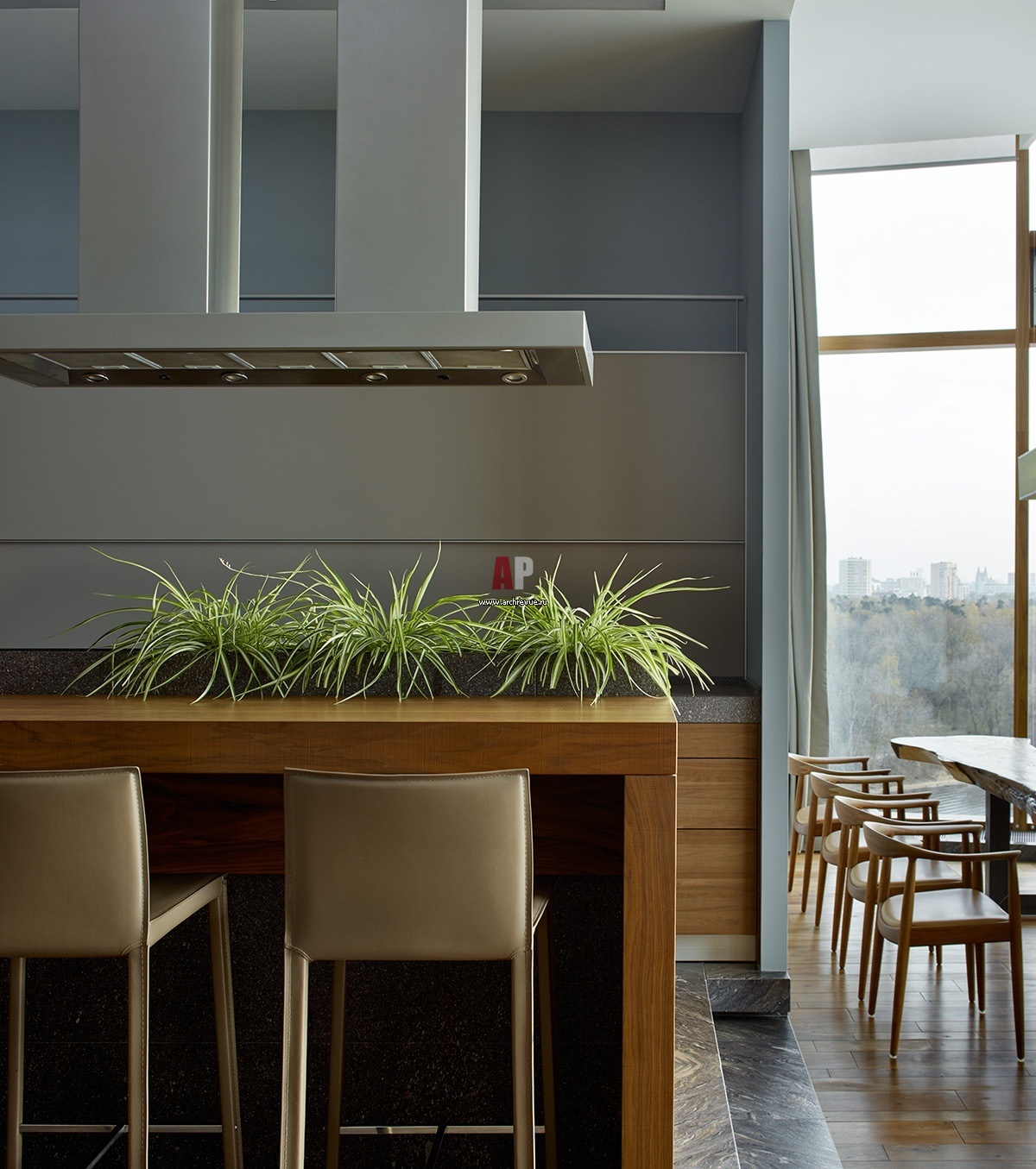 Зона кухни в общей гостиной. Барные стулья, BoConcept.