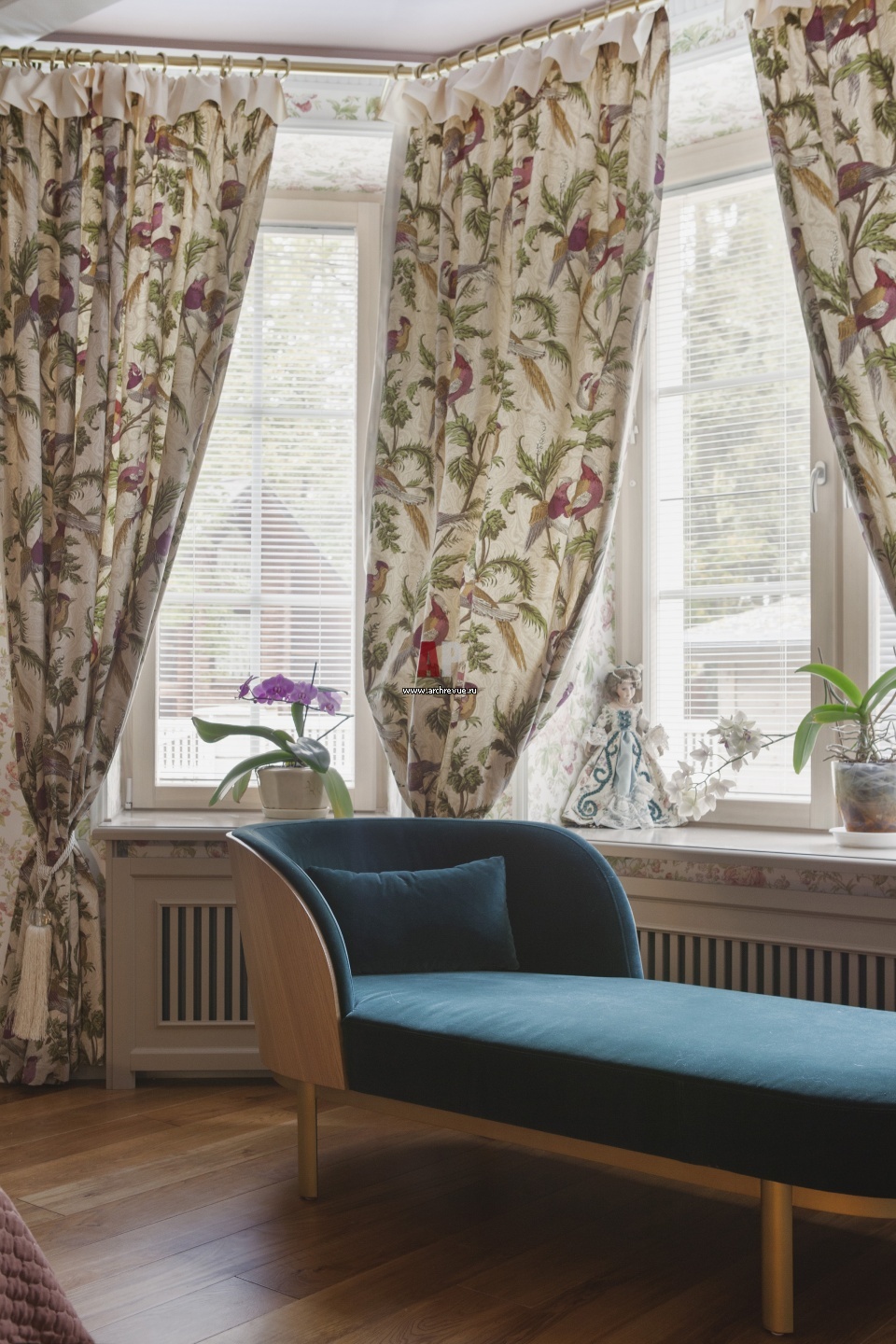 Фото интерьера спальни с полукруглым эркером.