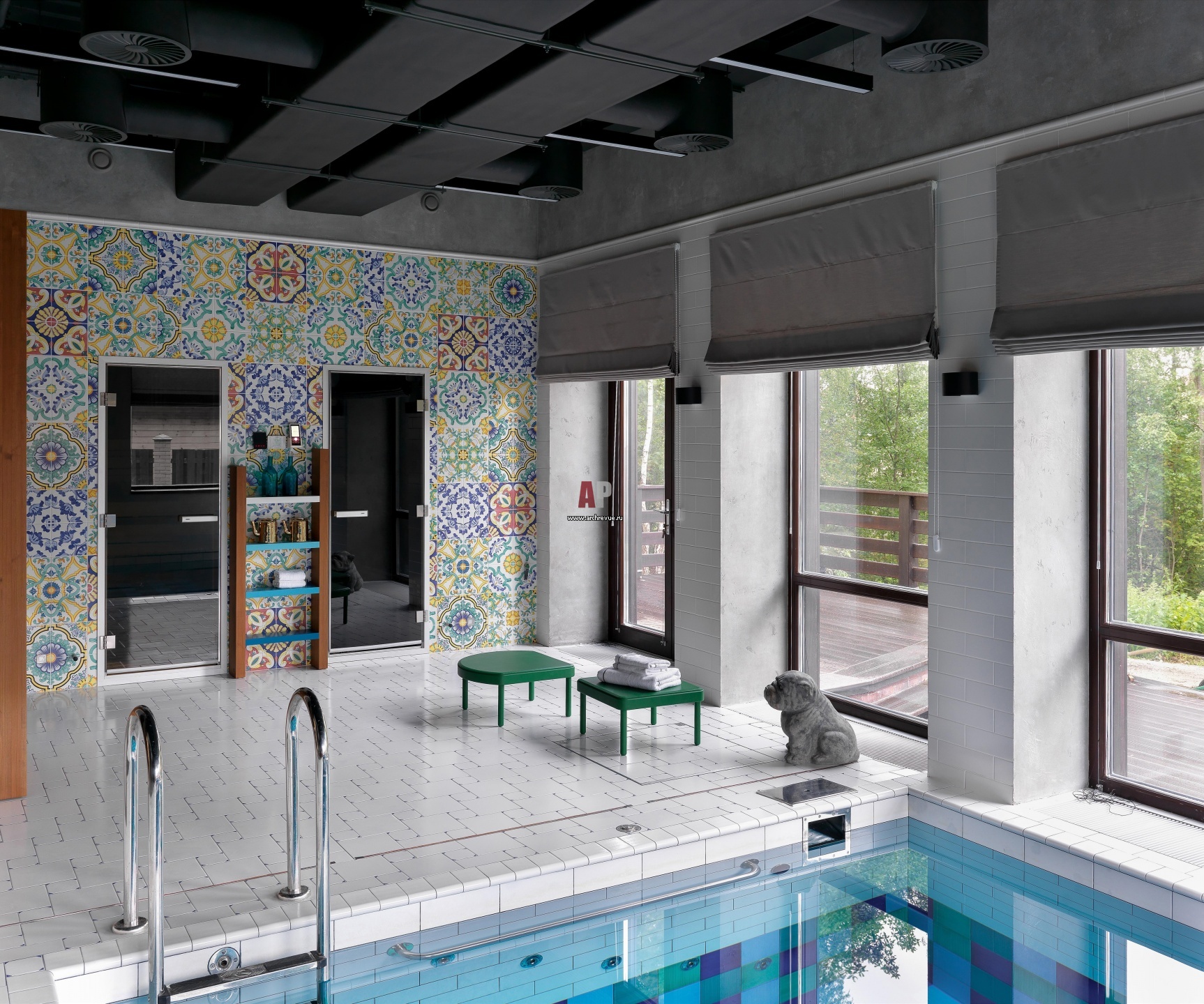 К бассейну примыкает СПА-зона с сауной.