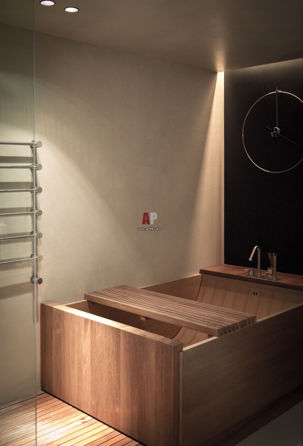 Ванная комната в эко-стиле. Ванна Agape сделана из натурального тика.