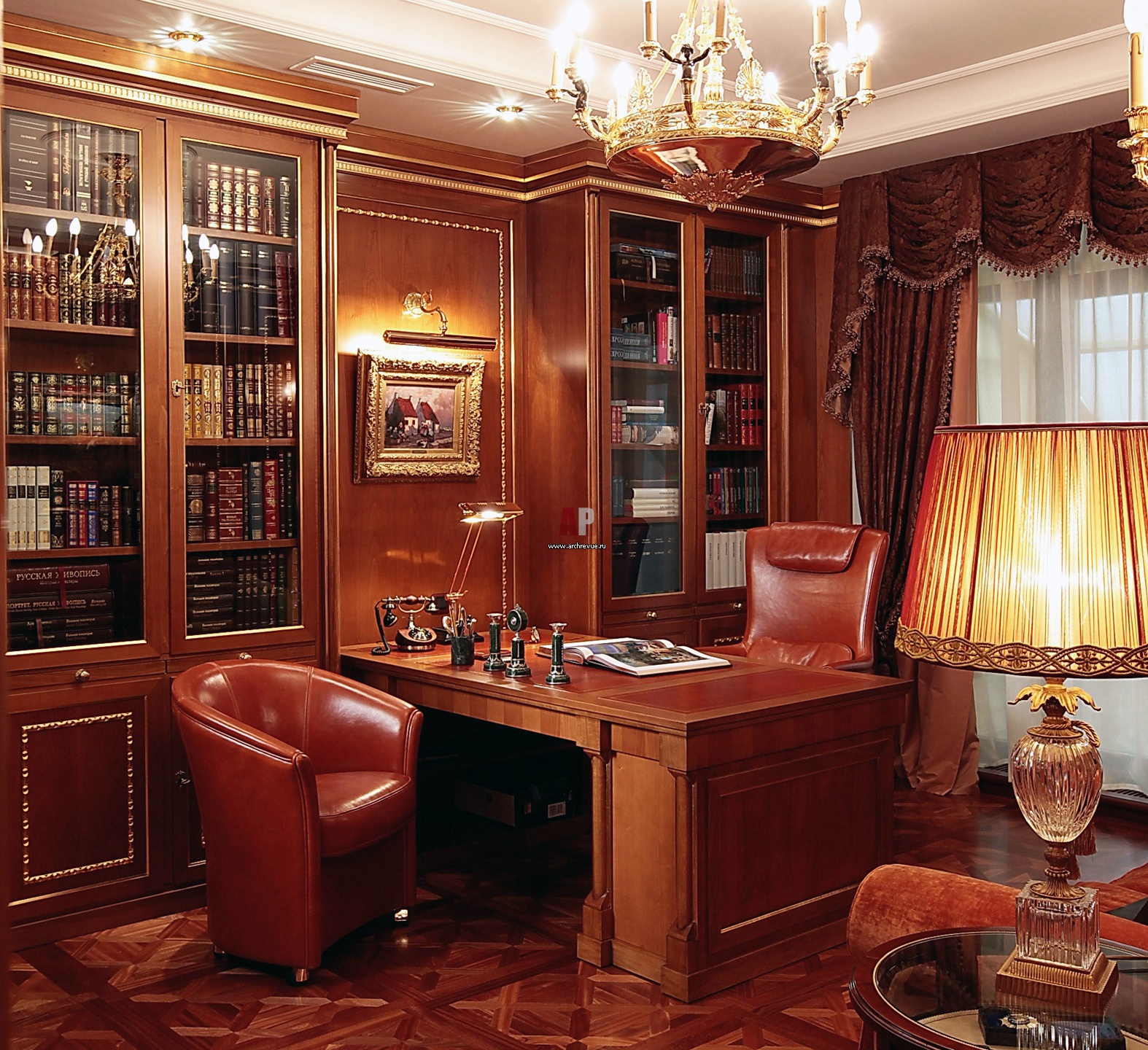 Фото интерьера кабинета квартиры в классике с застекленной верандой