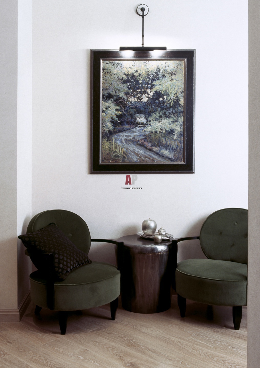 На полах жилых помещений – массивная половая доска из дуба, тонированного светлым маслом, поставщик «Элит-Декор».