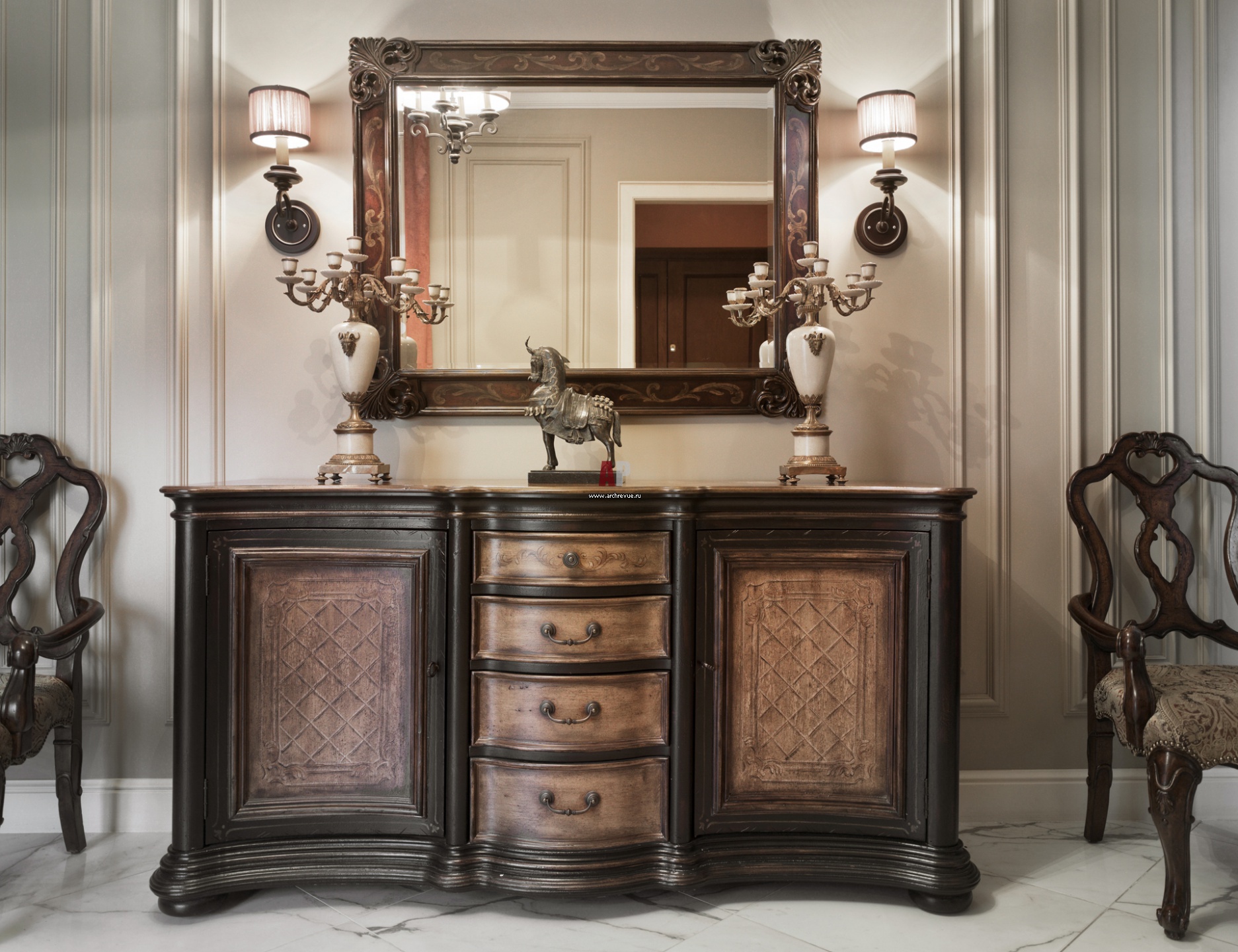 Входная зона обставлена мебелью от американских фабрик. Аксессуары, поставщик