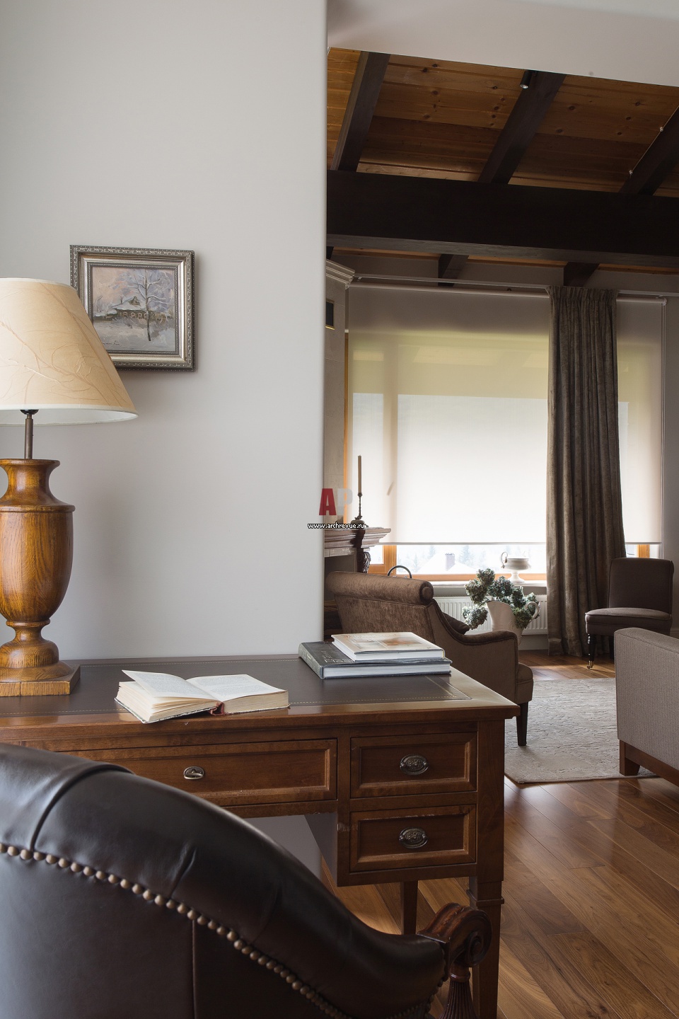 Фото кабинета с письменным столом в номере отеля класса премиум.