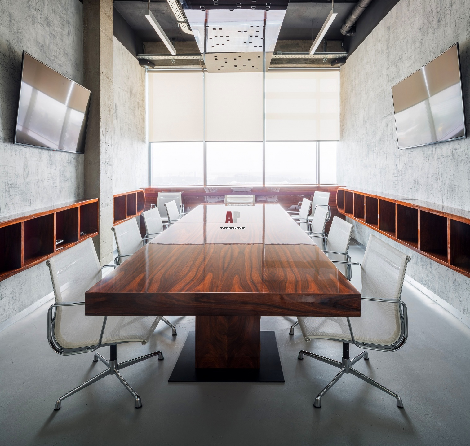 Интерьер главной переговорной. Переговорный стол сделан на заказ, столешница выполнена из палисандра.