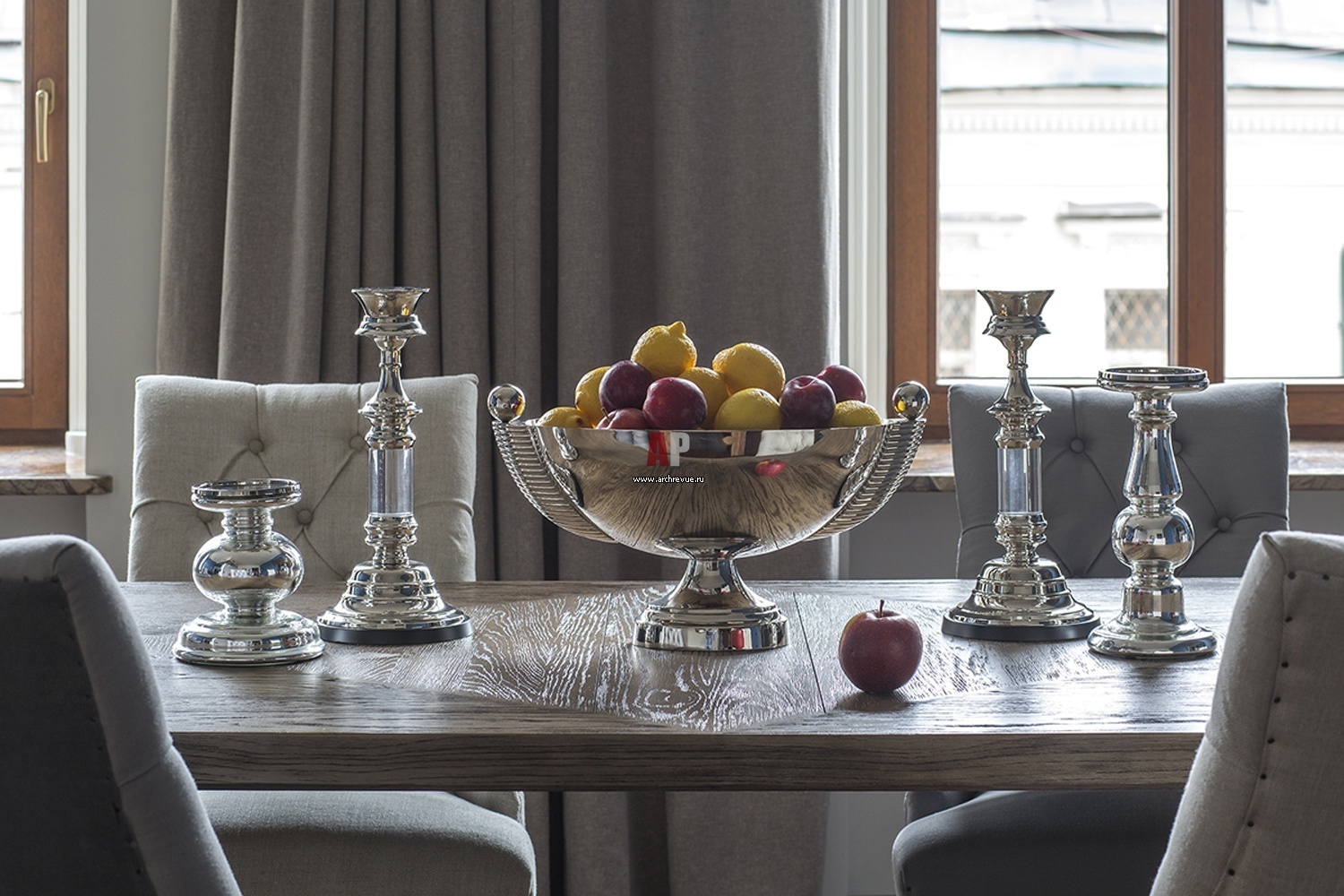 Праздничная сервировка обеденного стола квартиры в стиле фьюжн.