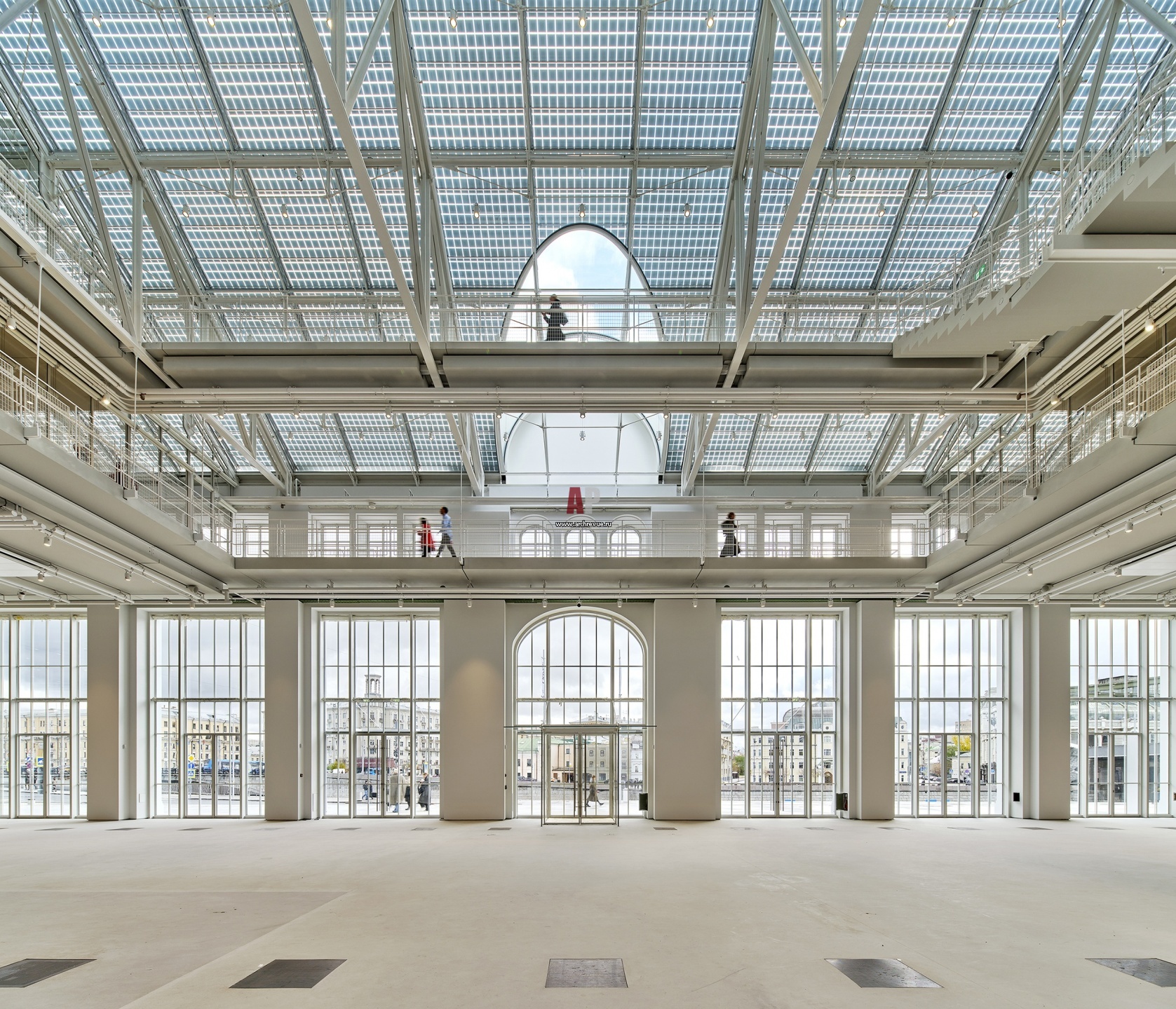 Входная группа. Основа архитектуры - оригинальные конструкции (от несущих металлических колонн и лестниц до кровельных ферм инженера Владимира Шухова), их тщательно исследовали, чтобы максимально эффективно сохранить.