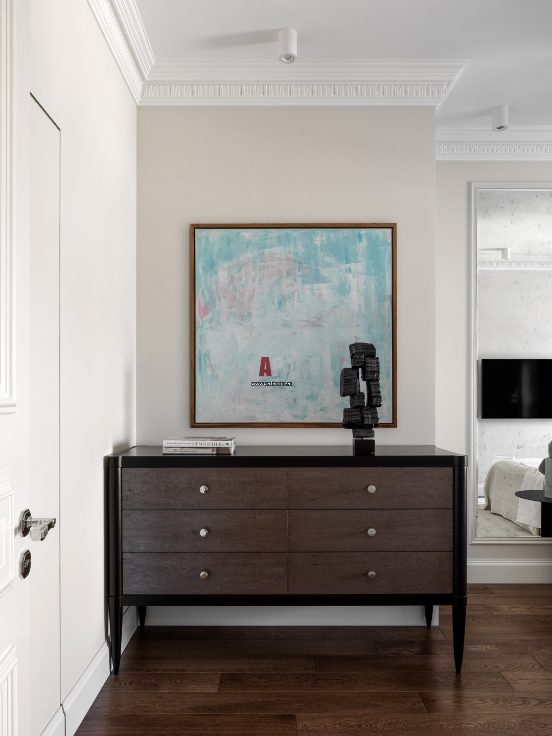Прихожая. Комод изготовлен на заказ. Картина Джона Пешкова. Скульптура Льва Ефимова.