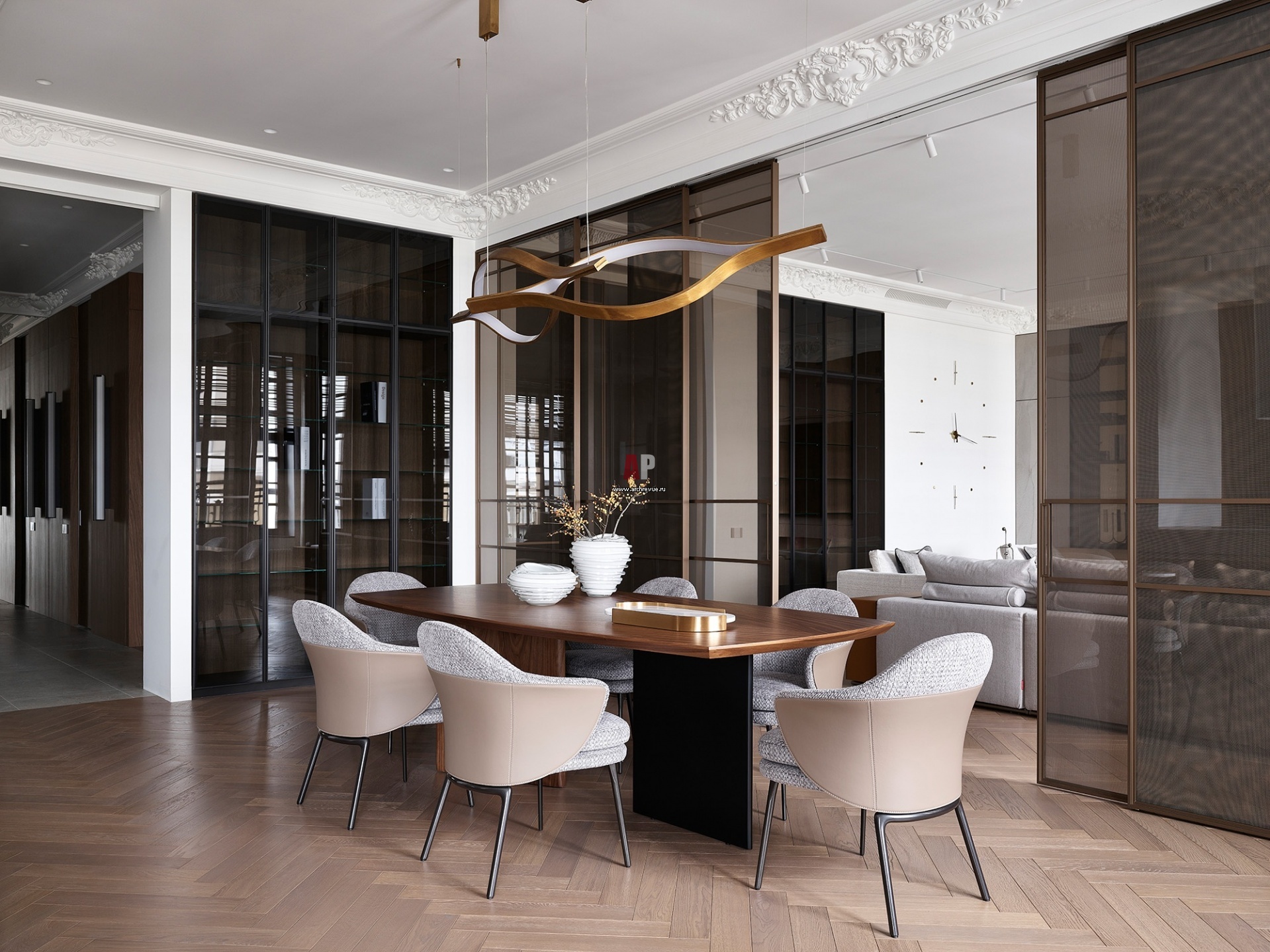 «Большой обеденный стол мы искали долго, так как у заказчика были специфические личные требования: столешница должна быть деревянной, толстой, со скругленными углами. Когда мы уже решились на индивидуальное изготовление, буквально за неделю до приезда хозяев случайно нашли идеальный стол у NeopolisCasa», - рассказывает дизайнер Инна Майерс.
