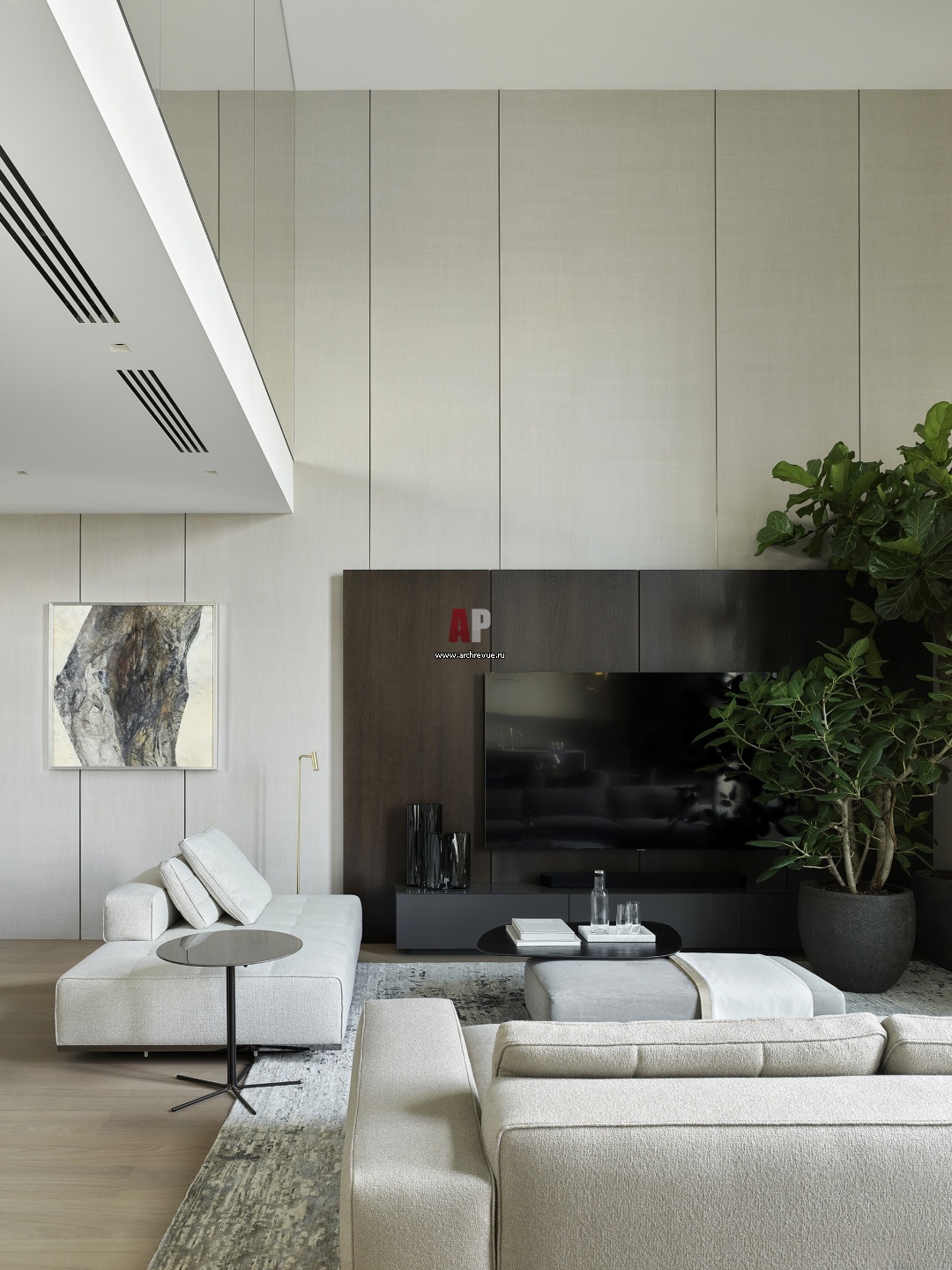 Фото интерьера гостиной пентхауса в стиле минимализм