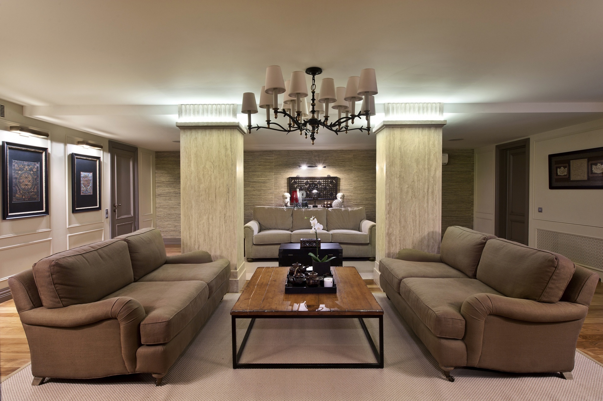 Зона отдыха в стиле американской неоклассики.