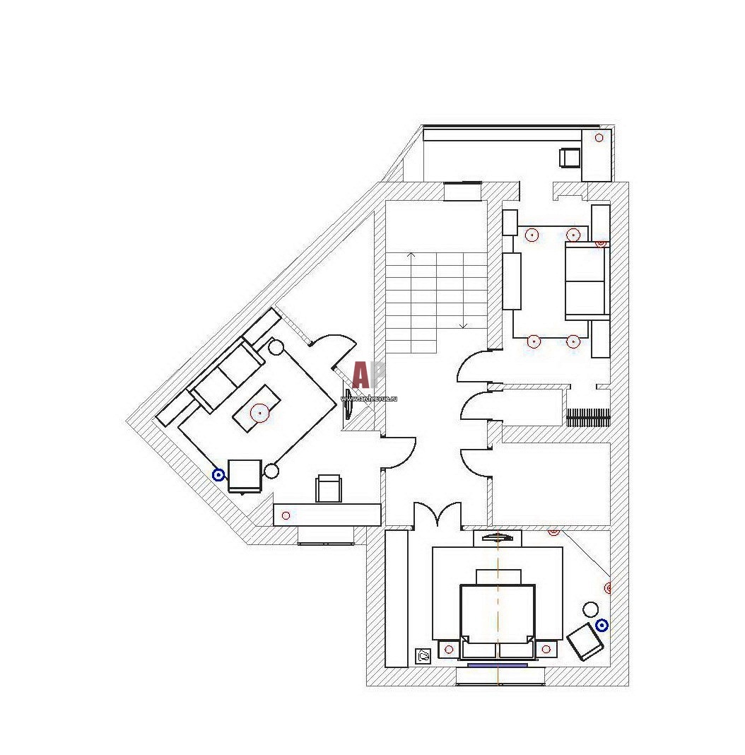 План второго этажа таунхауса 220 кв. м с расстановкой мебели.