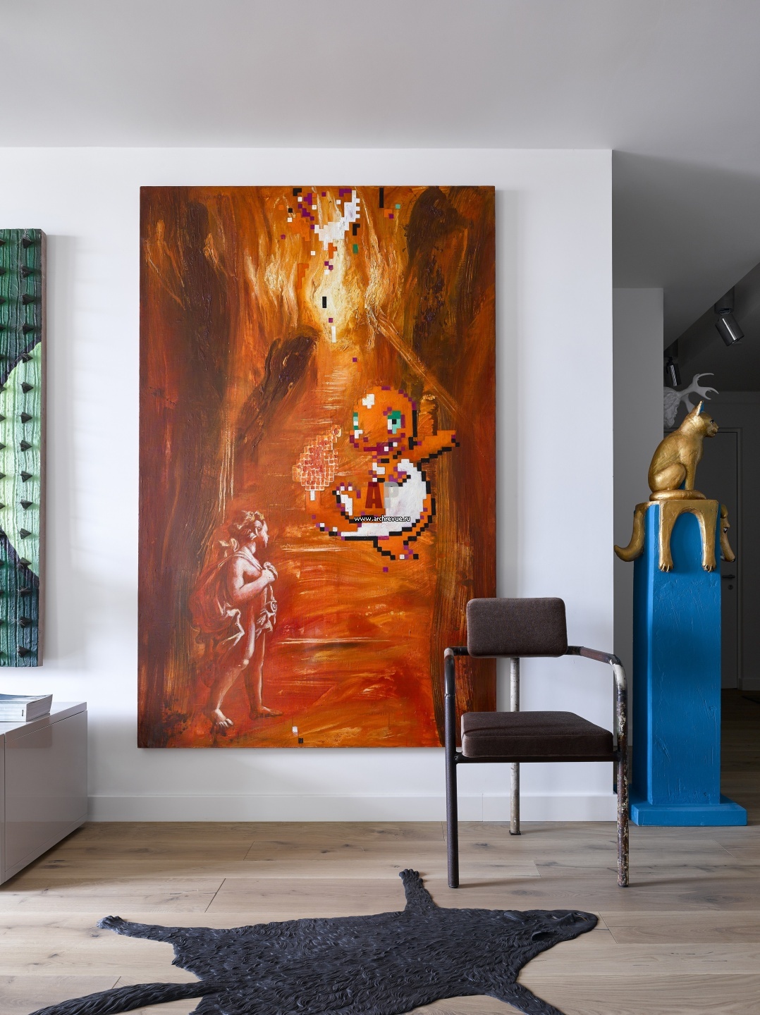 Гостевая квартира с коллекцией современного искусства. Интерьер гостиной. На стене – «Приветствие» Анастасии Руссы.