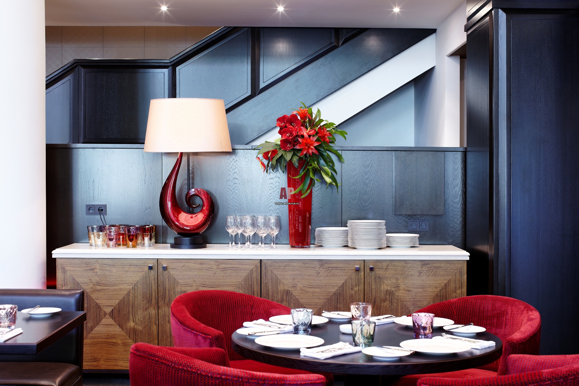На балкон ведет лестница простой конструкции, выполненная из дерева. В ее изготовлении использовался дуб, тонированный в черно-зеленый оттенок.