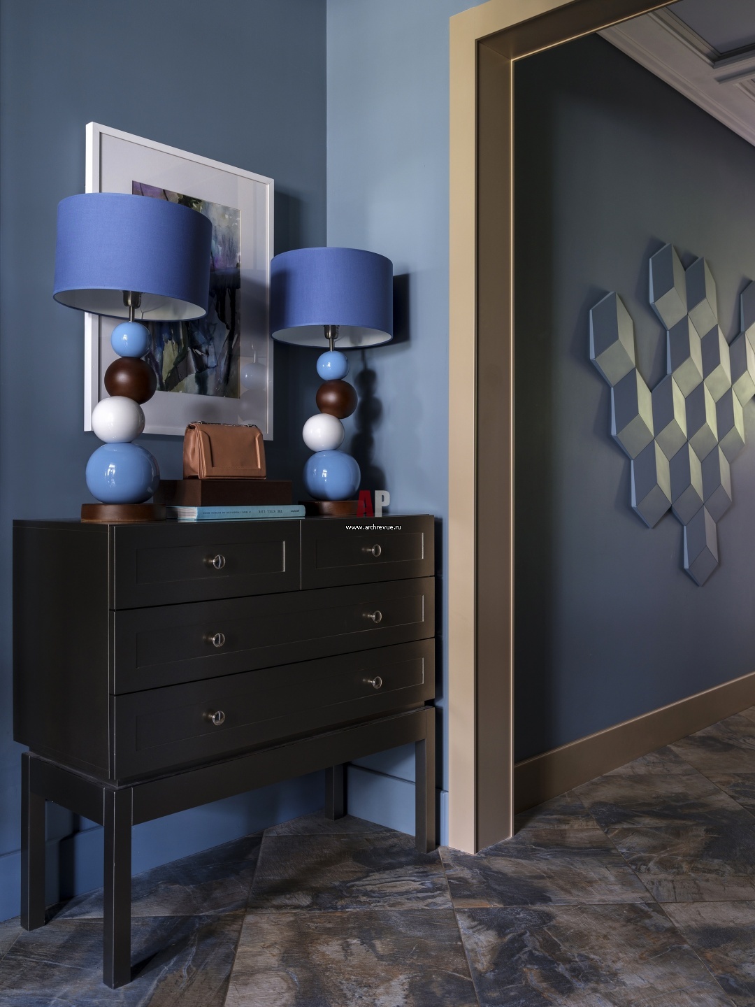 Загородный дуплекс в стиле фьюжн. Интерьер прихожей. Лампы с основанием из керамики, Farol.