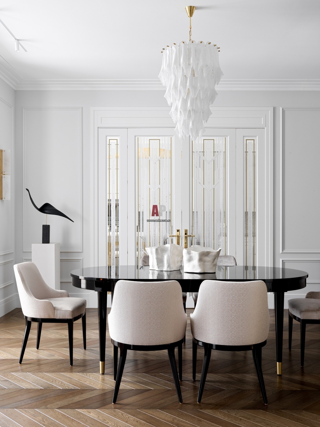 Дизайнеры сохранили максимальную высоту, потолки не занижали ни в одном помещении. Благодаря этому в квартире сохранен воздух и ощущается свобода.