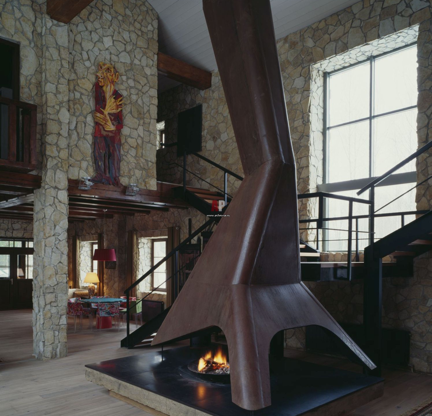 Подстолье каминной топки сделано из бетона, кожух – из проржавленного железа.