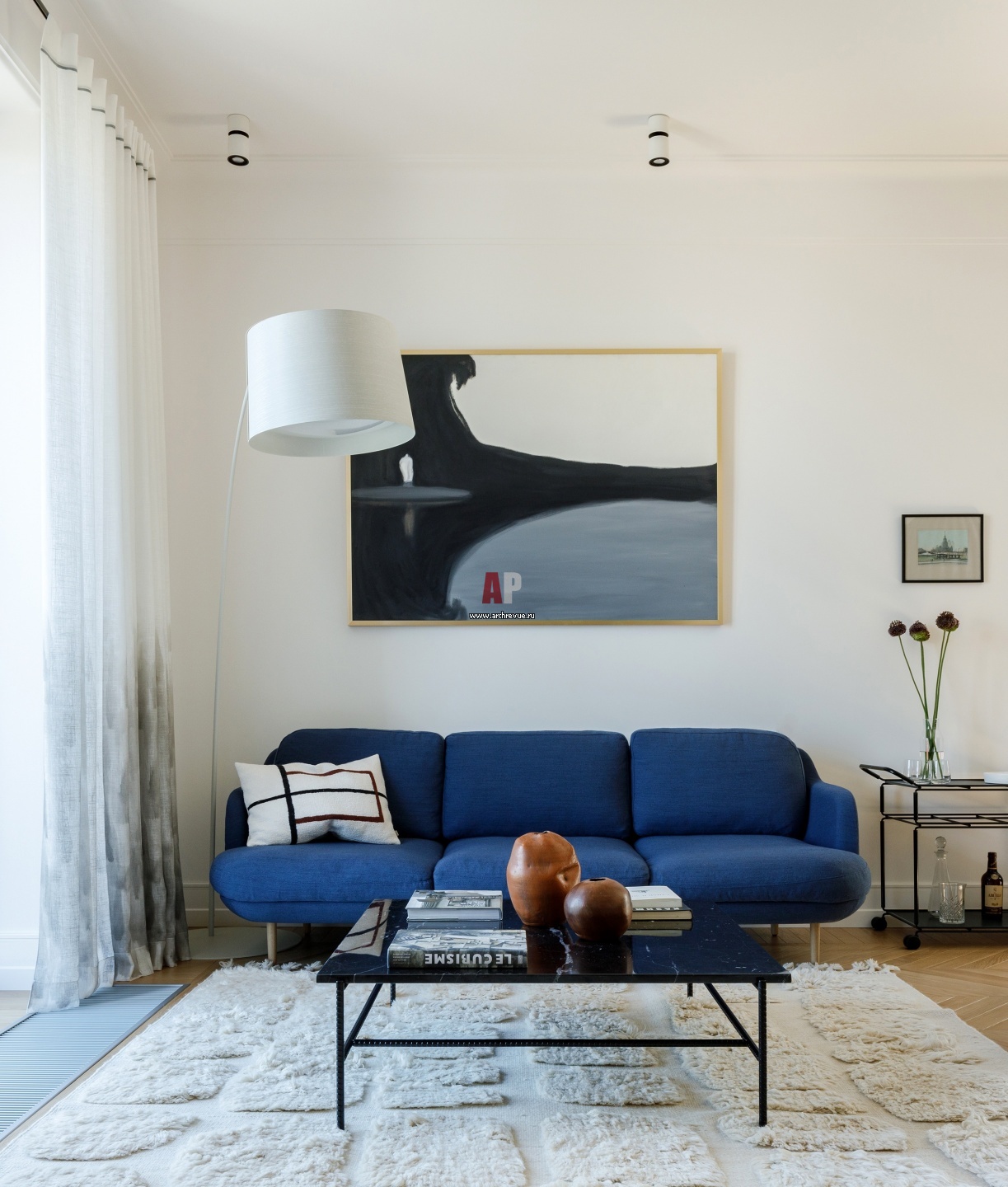 Зона отдыха в гостиной. На стене – работа Ильи Овсянникова и графика с изображением гостиницы «Украина» Александра Шевченко.