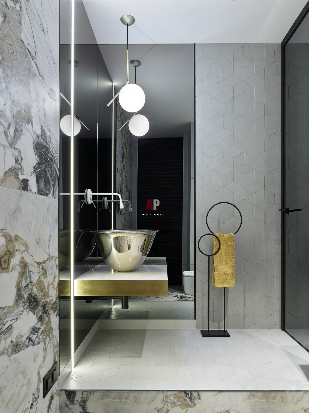 Гостевой санузел. Плитка, Rex и Atlas Concorde. Смеситель, раковина, Gessi. Светильник, Flos.
