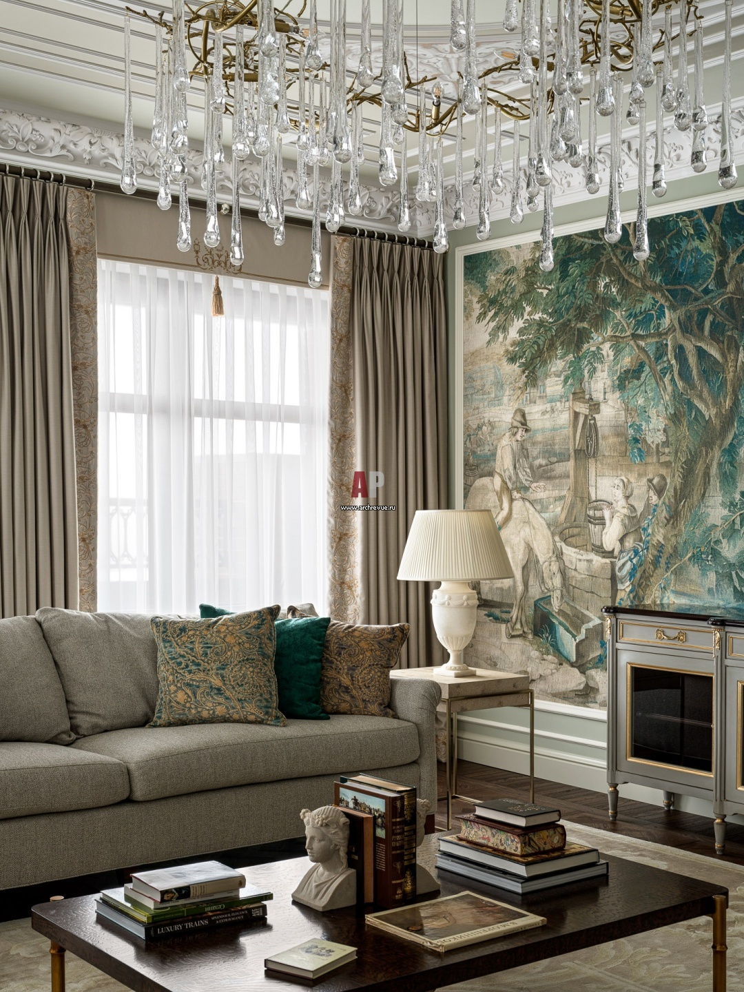Фото интерьера гостиной квартиры в стиле неоклассика