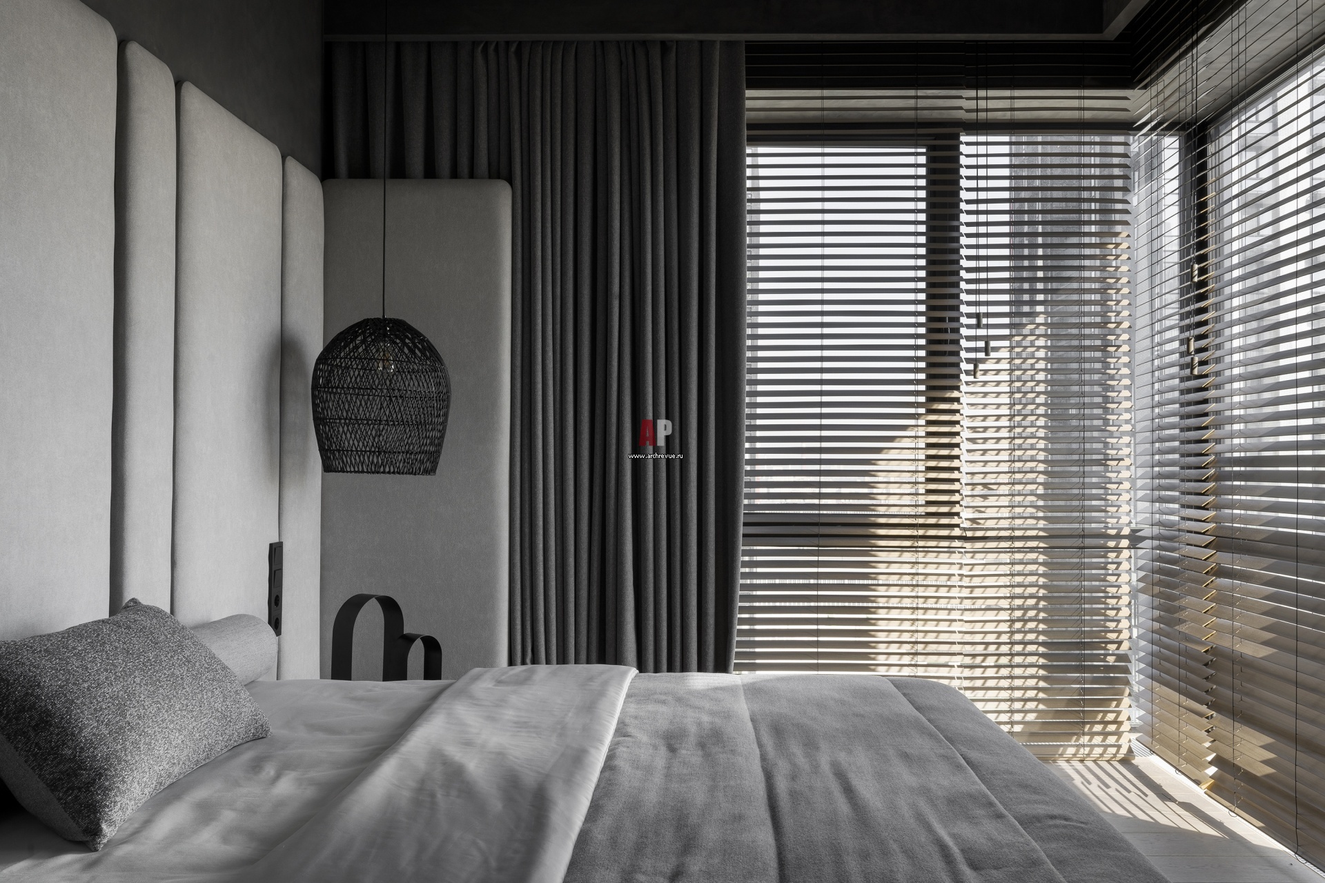 Гостевая квартира с темной палитрой и брутальными фактурами