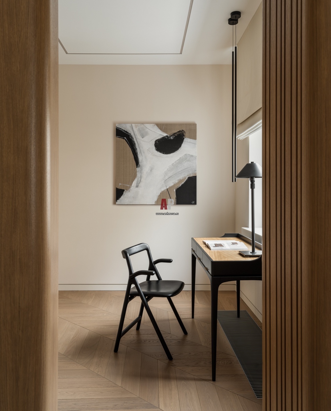 Детская мальчика также имеет отдельную зону для занятий. Деревянные изделия изготовлены на заказ из дуба. Стол, Unika Møblär. Стул, Woak Design.