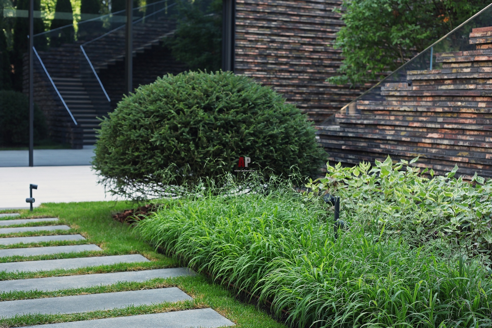 Ландшафтный дизайн участка современного парка в Николино. Фрагмент сада.